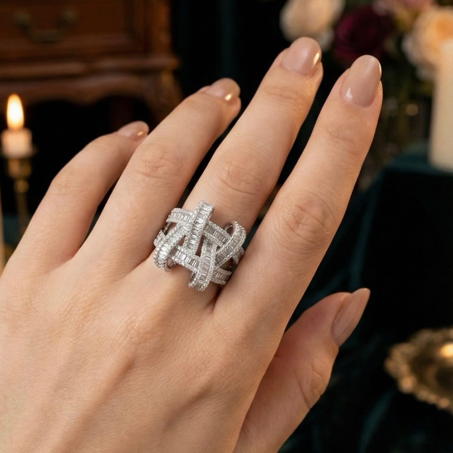 Pırlanta Montür Baget Taşlı Gümüş Yüzük