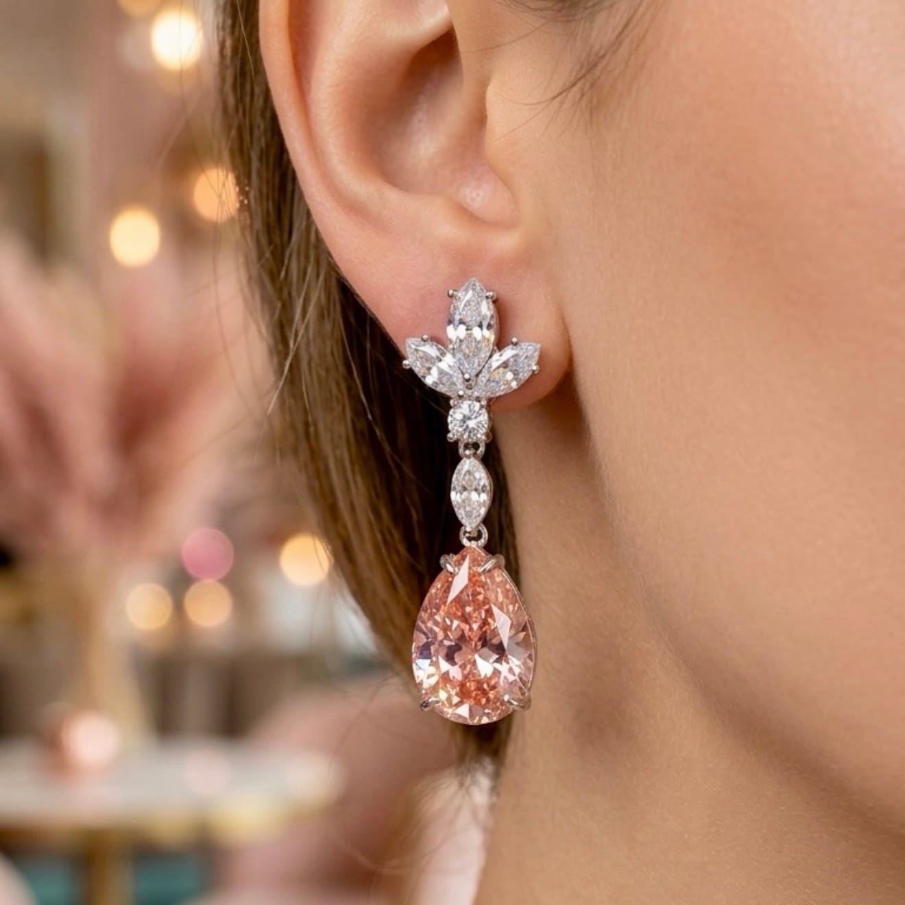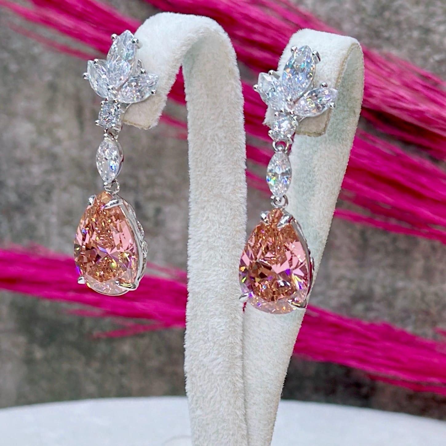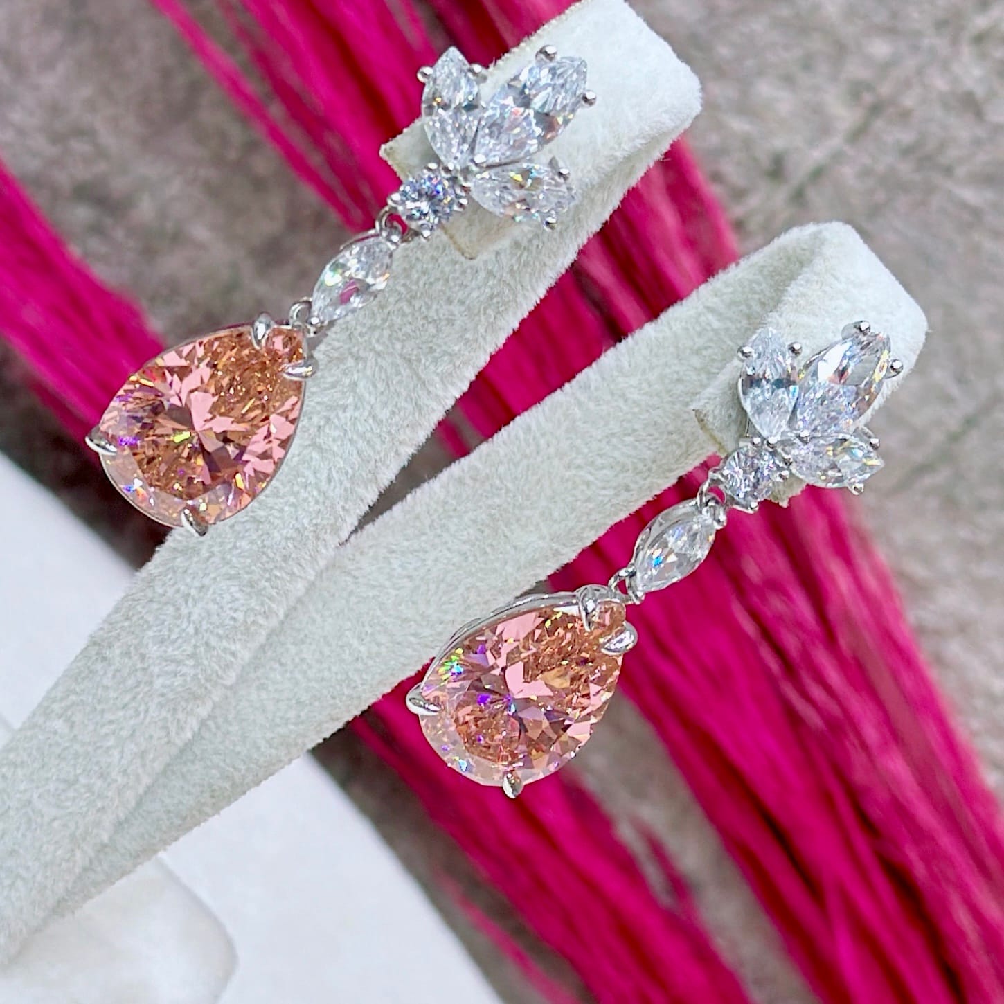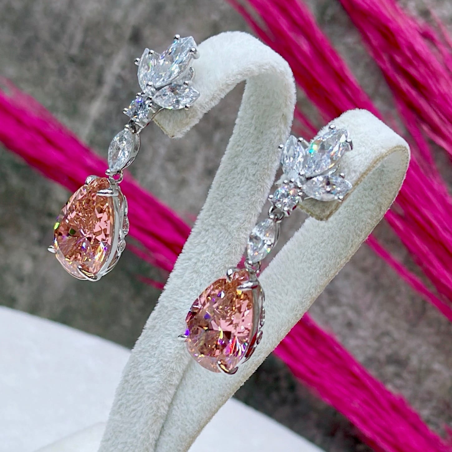 *Damla Model Pembe Kuvars Taşlı Gümüş Küpe
