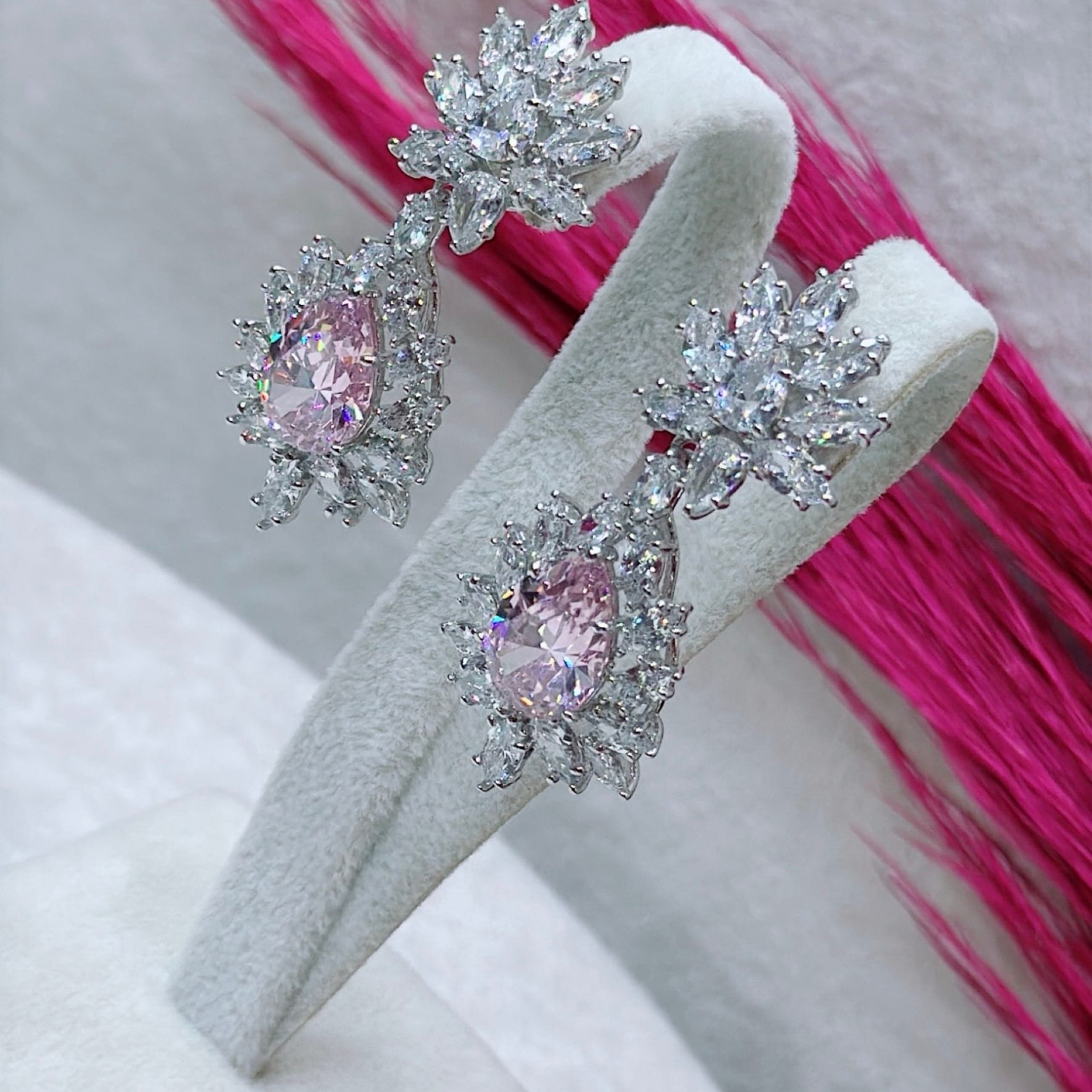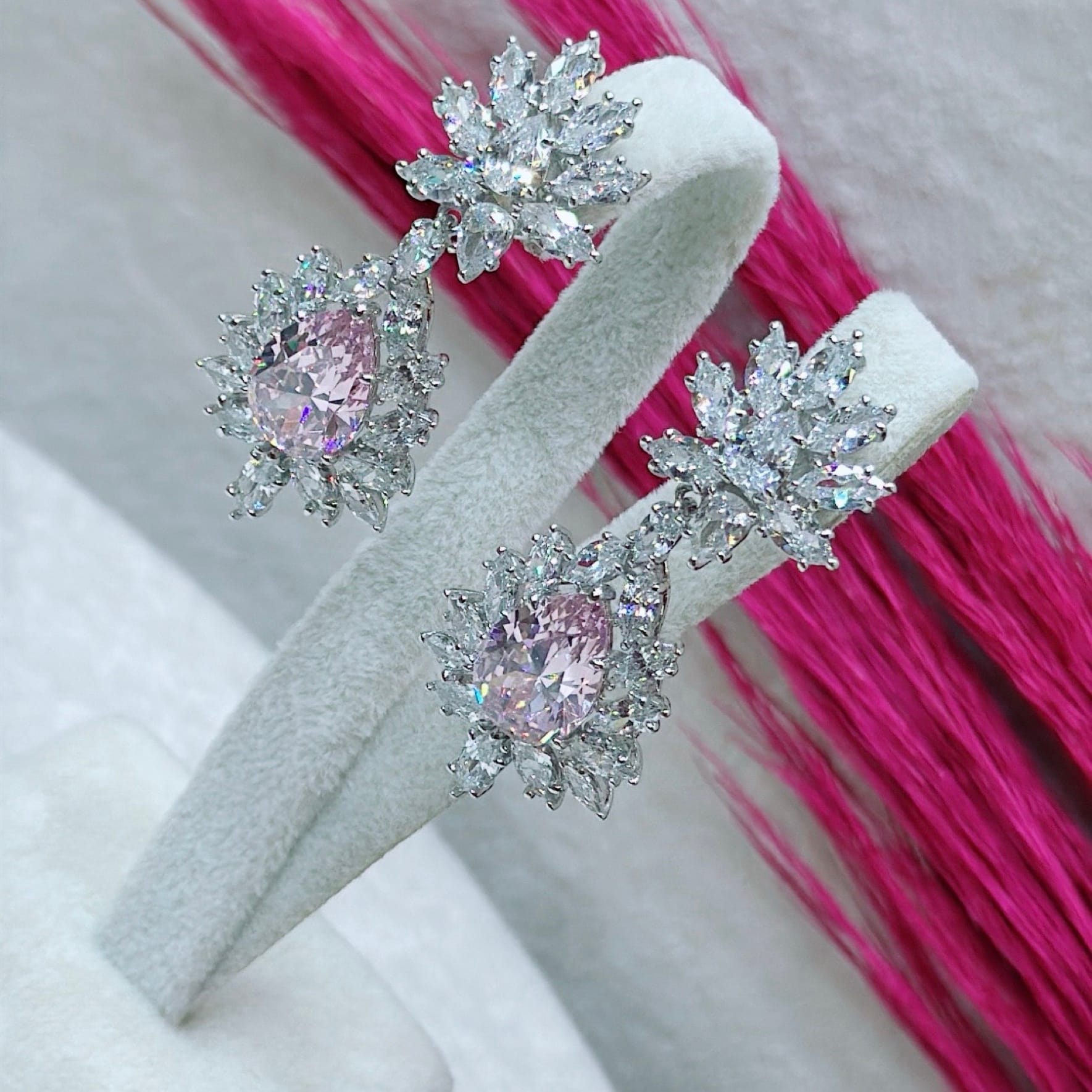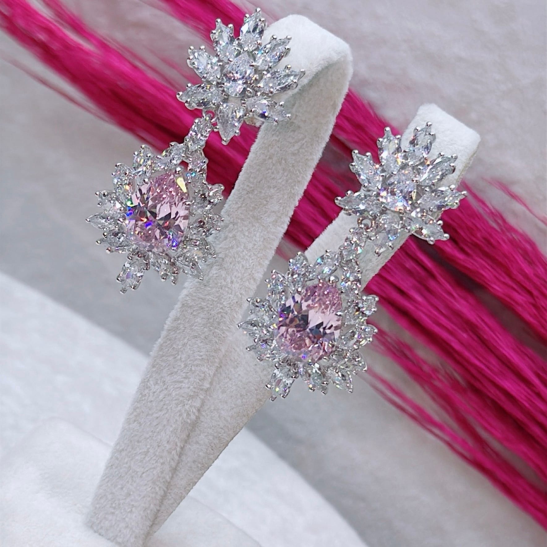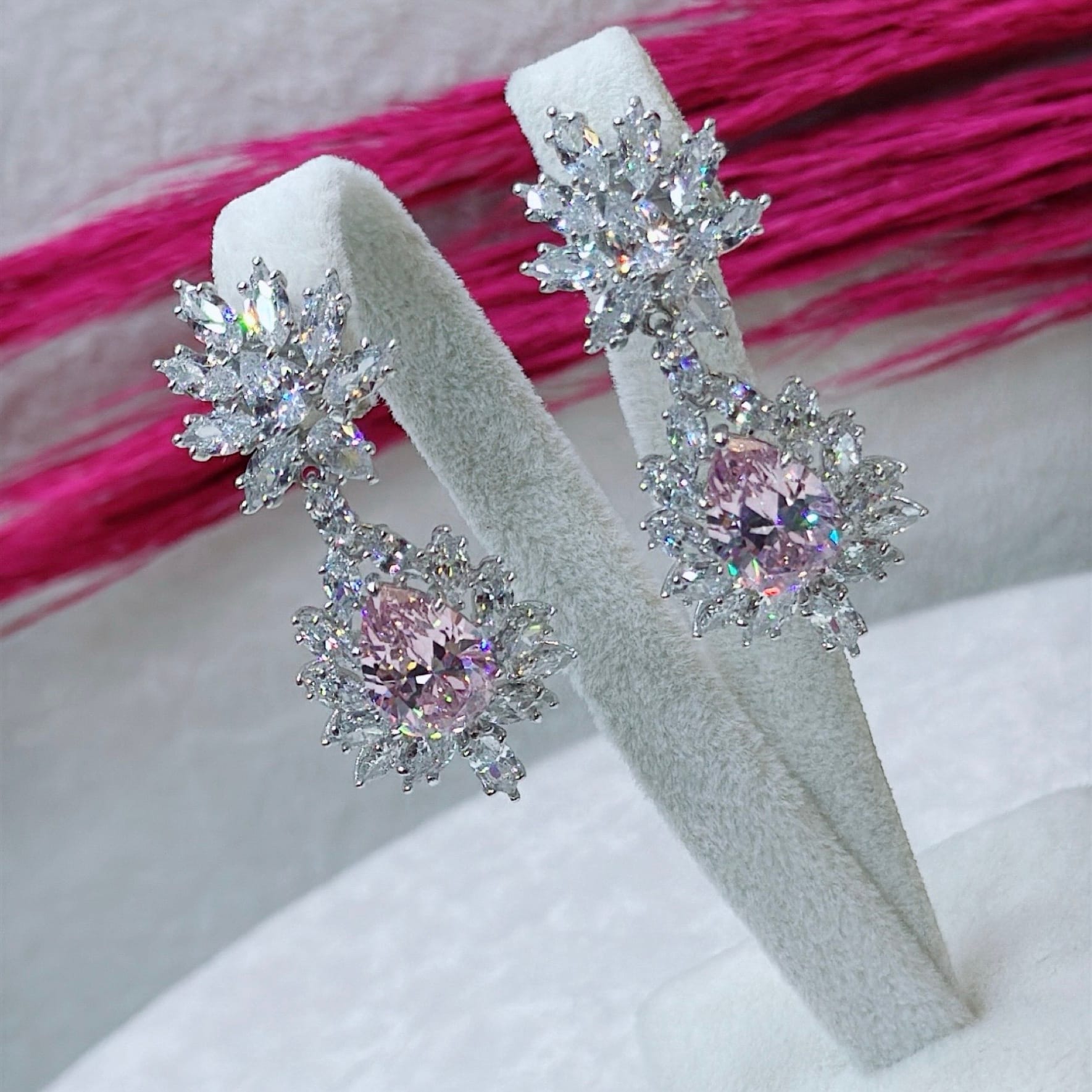 Pırlanta Montür Pembe Kuvars Taşlı Küpe