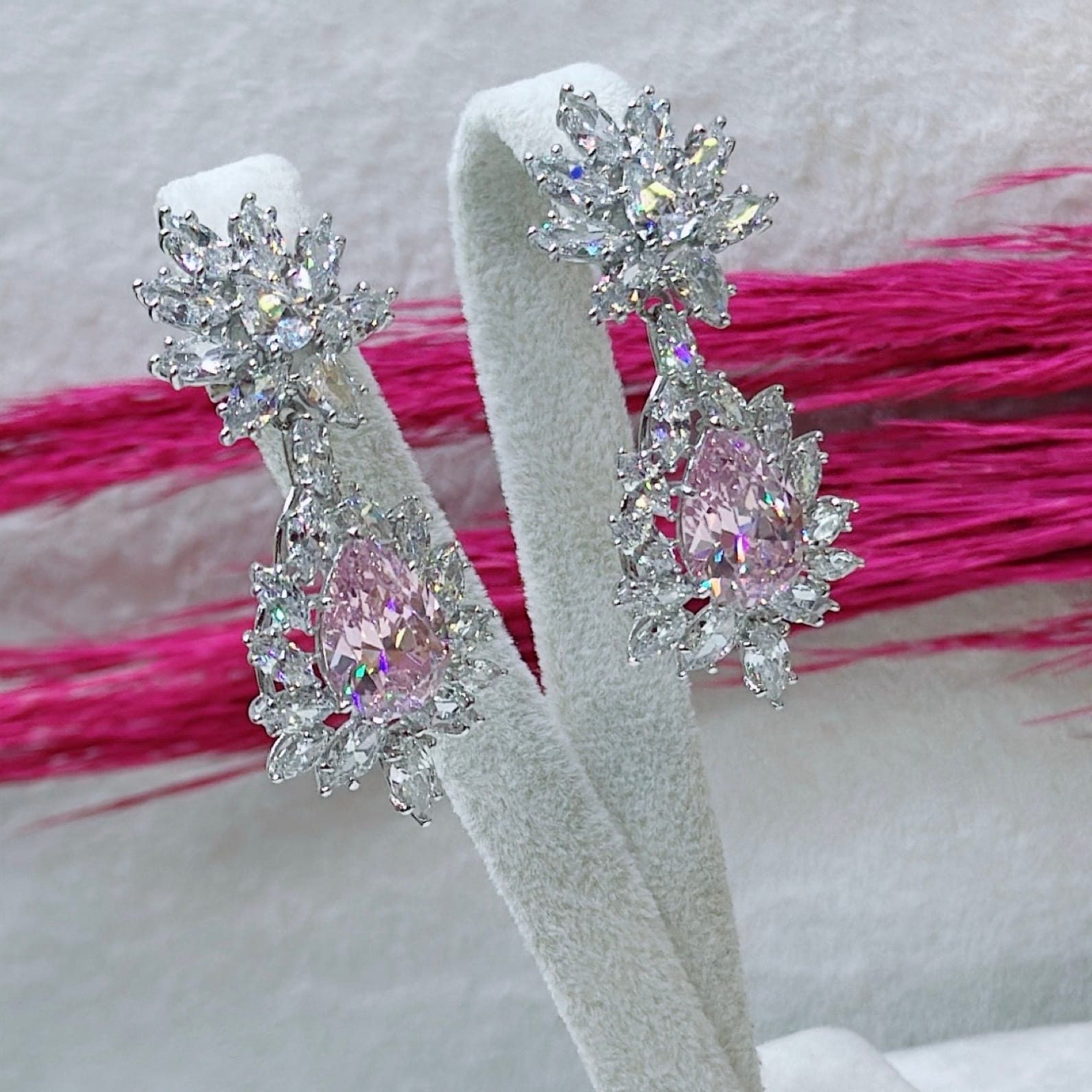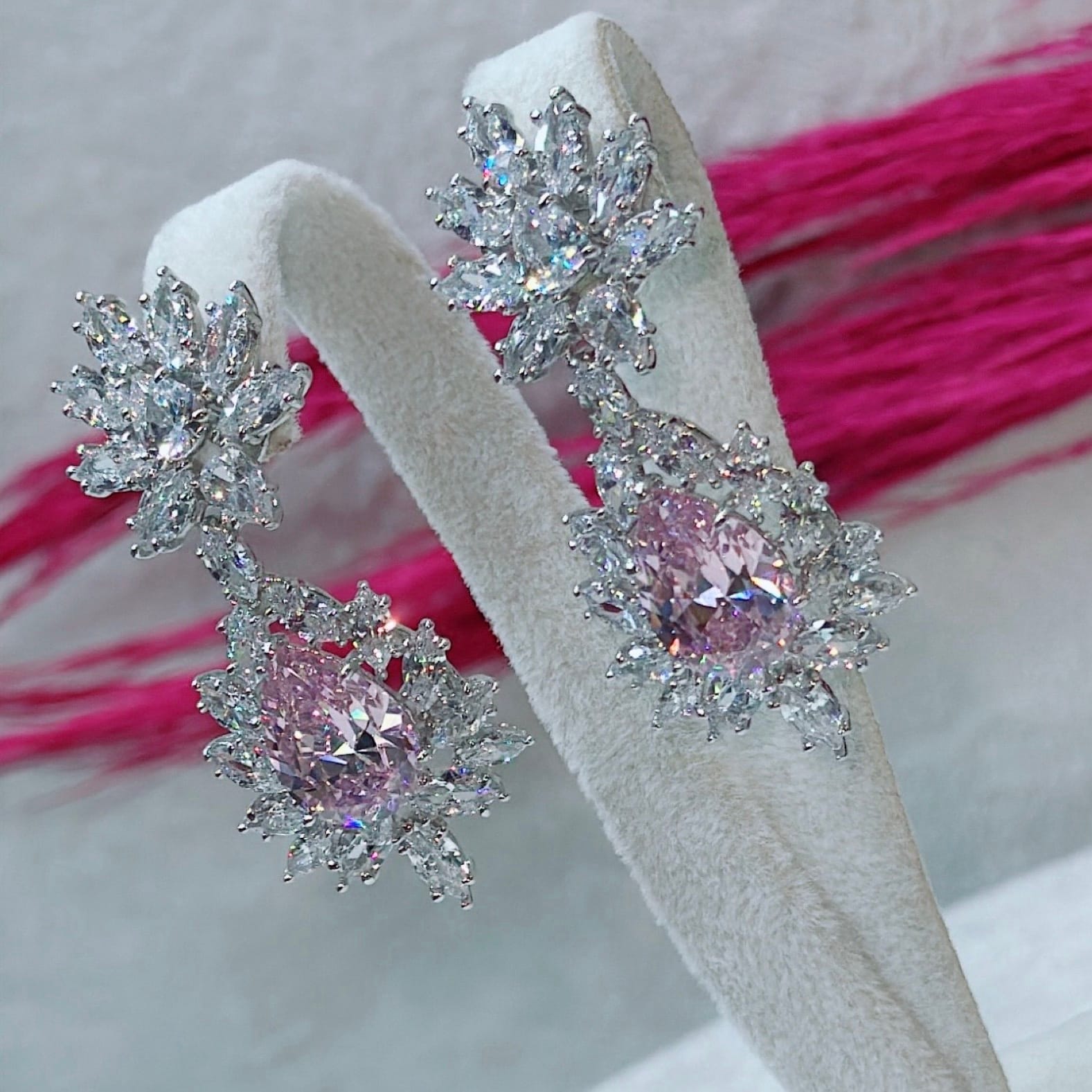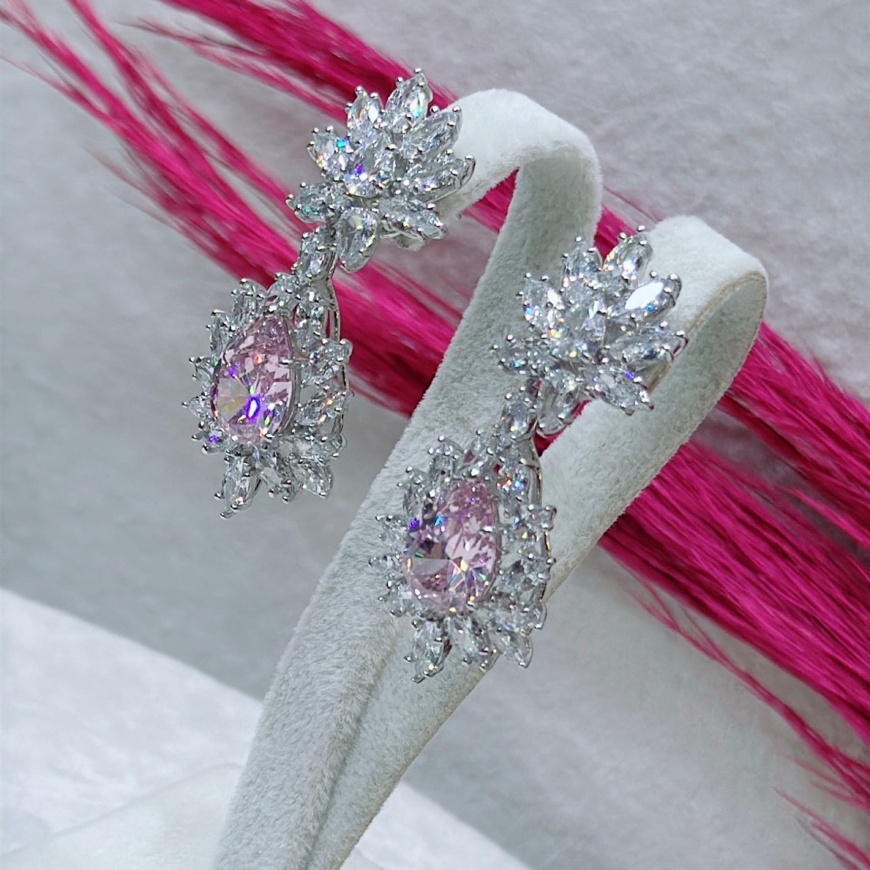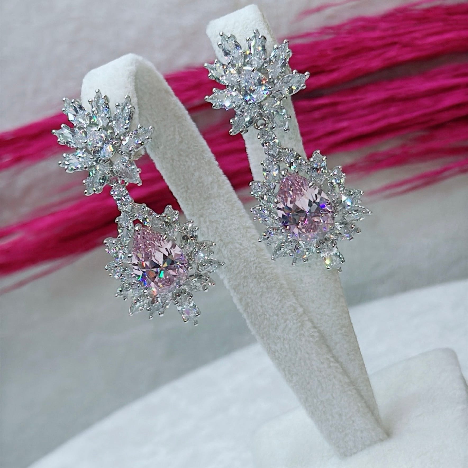 Pırlanta Montür Pembe Kuvars Taşlı Küpe