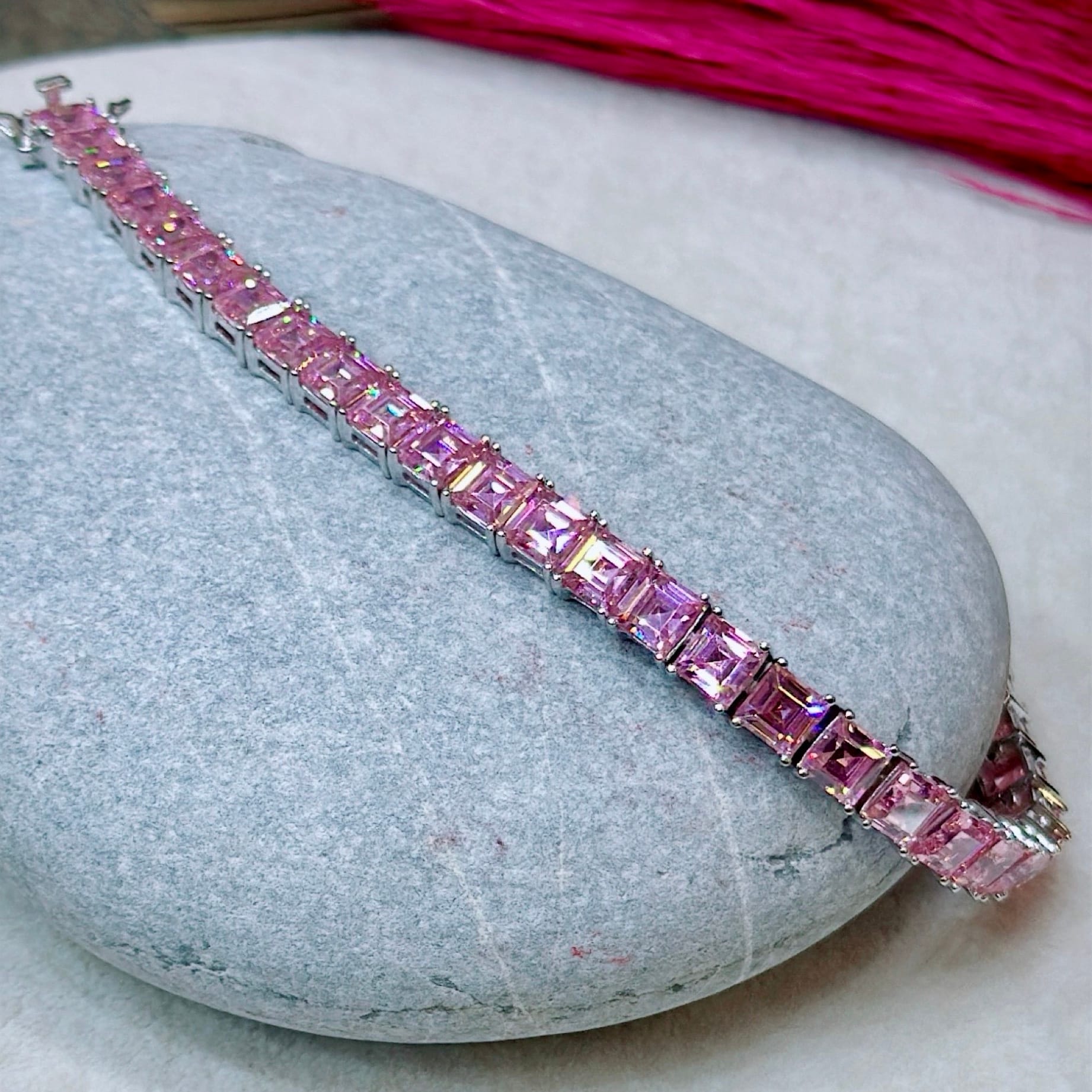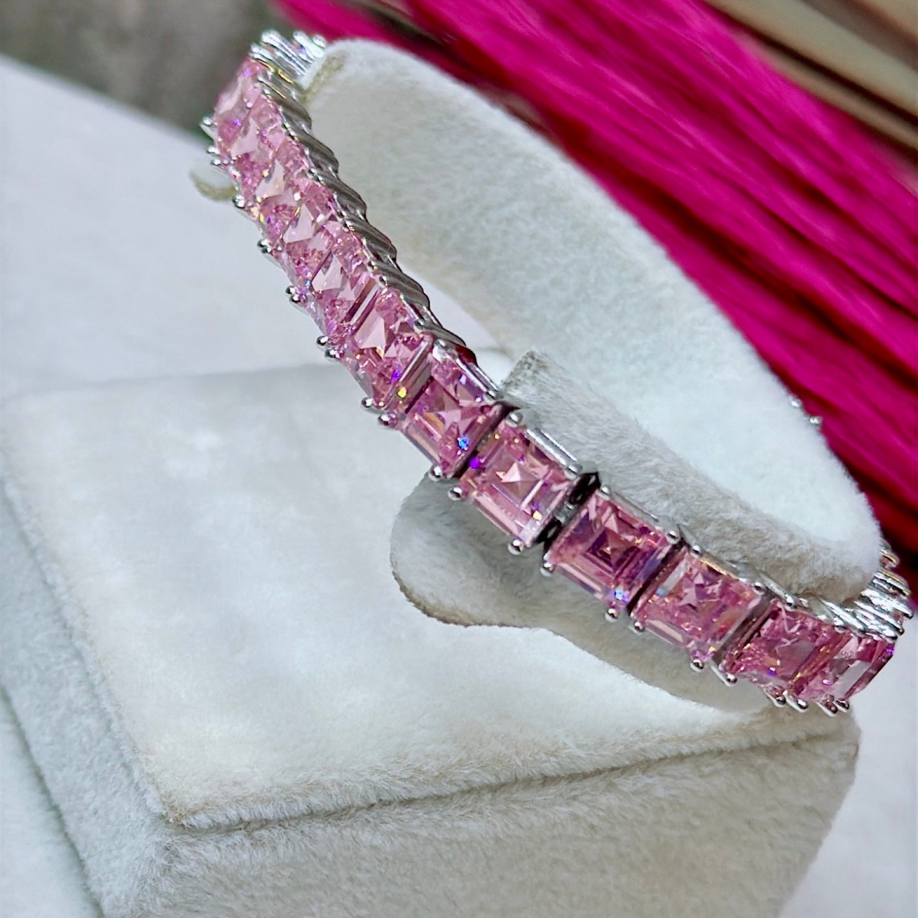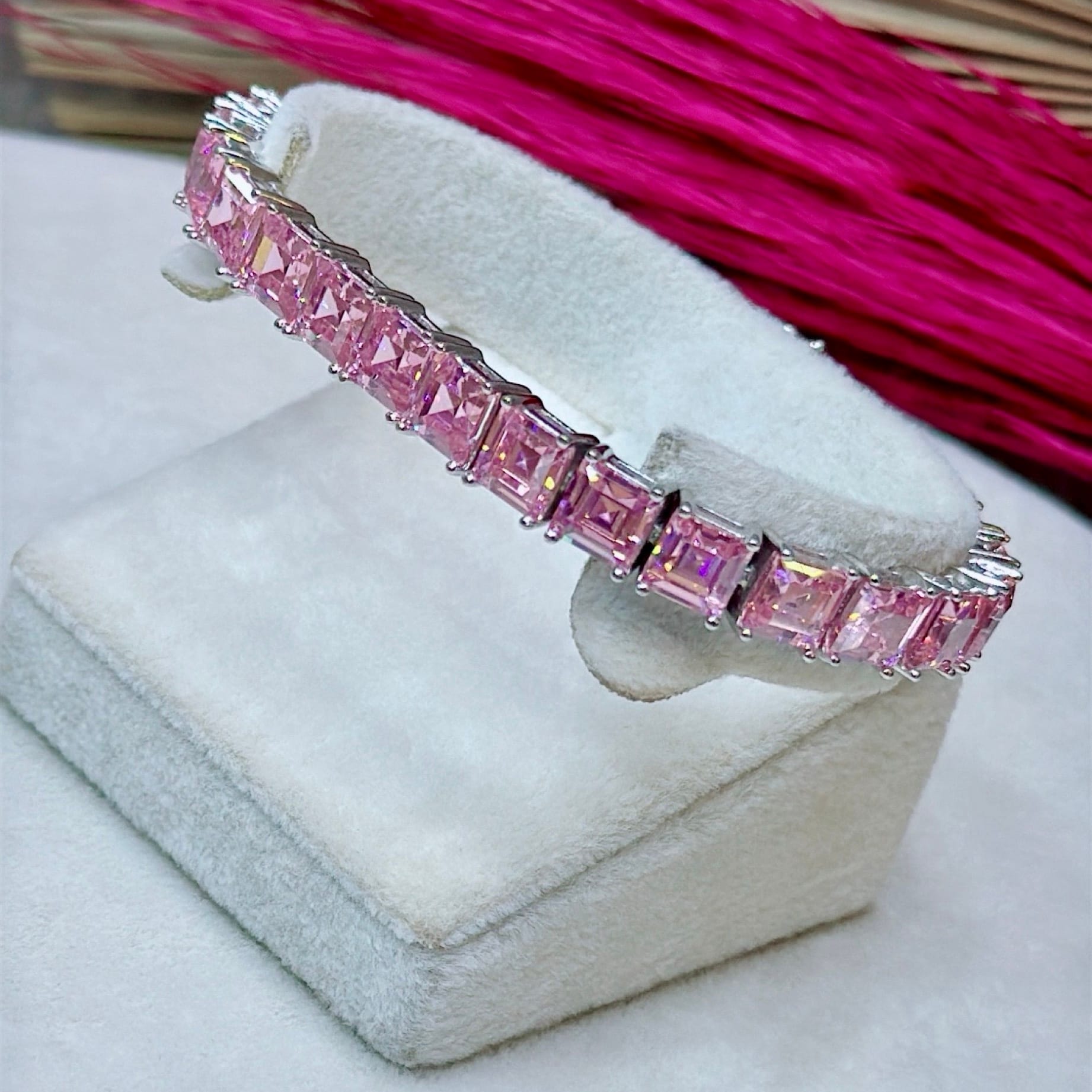 Pırlanta Montür Pembe Zirkon Taşlı Gümüş Bileklik