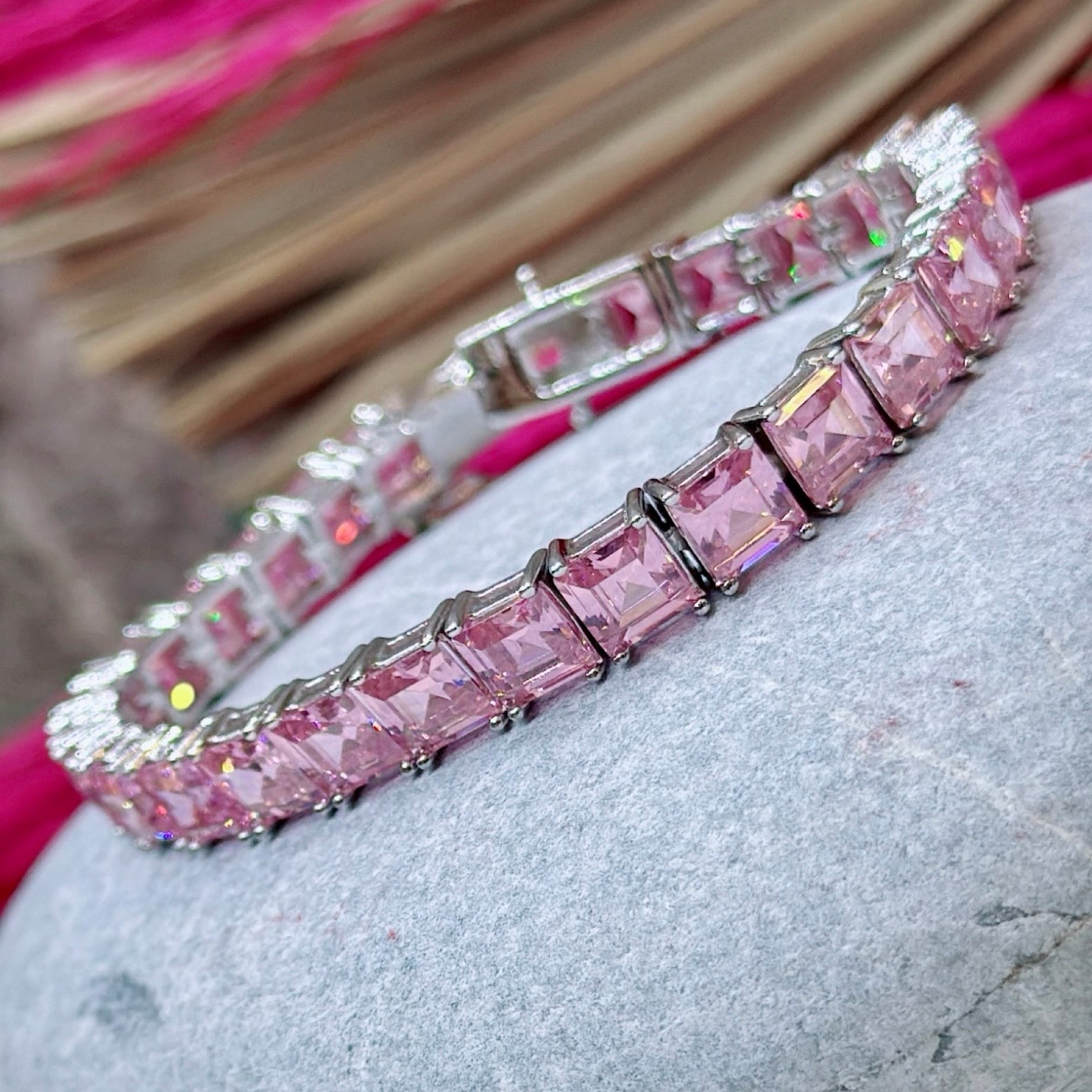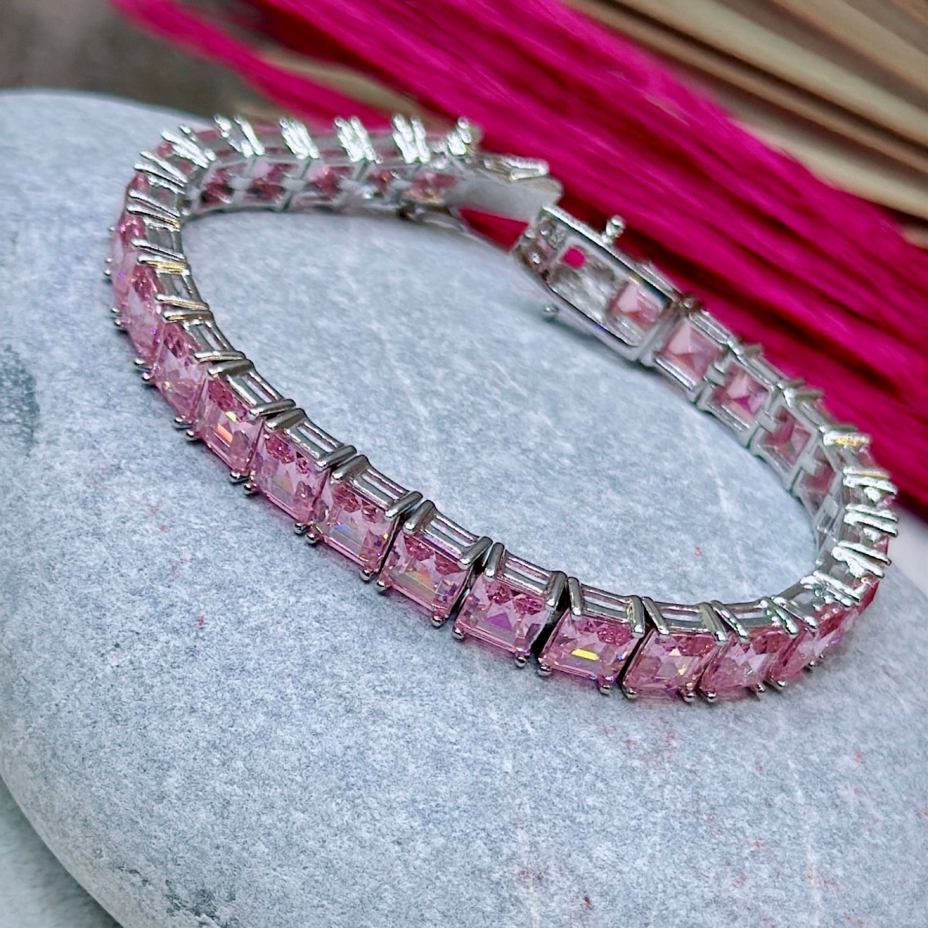 *Kare Baget Pembe Zirkon Taşlı
