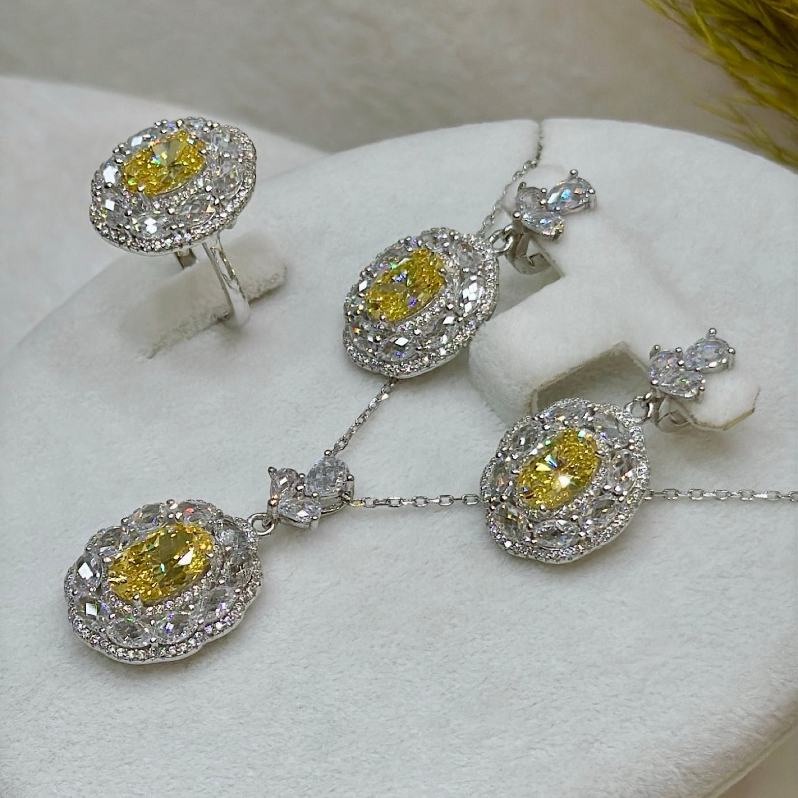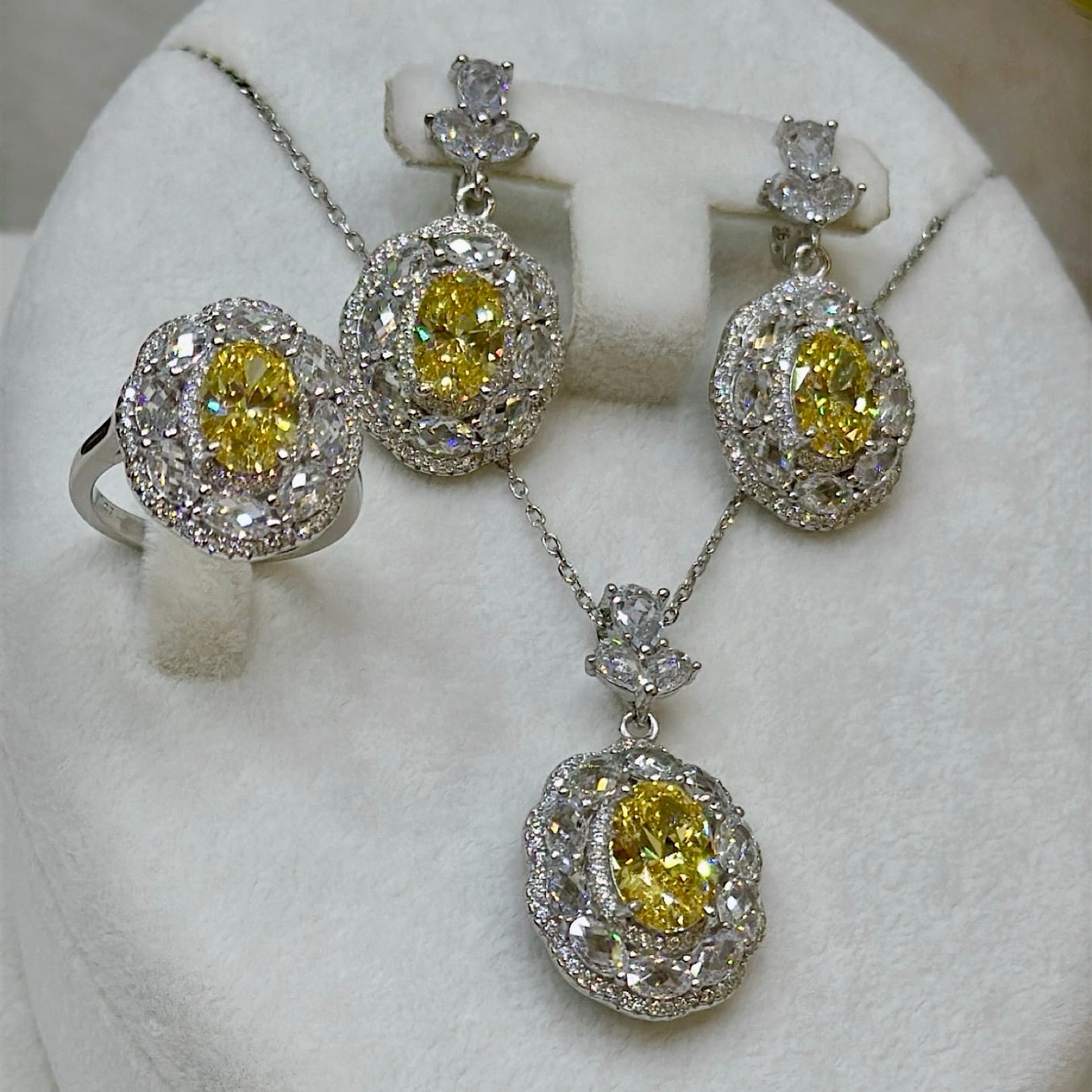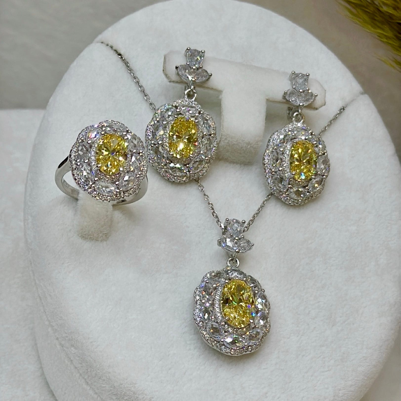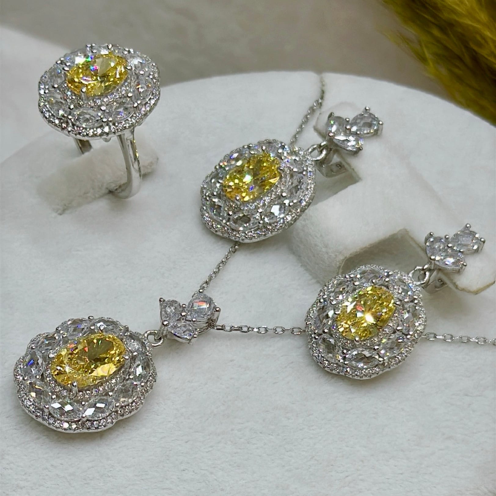 *Özel Üretim Sarı Sitrin Taşlı Üçlü Set Takım
