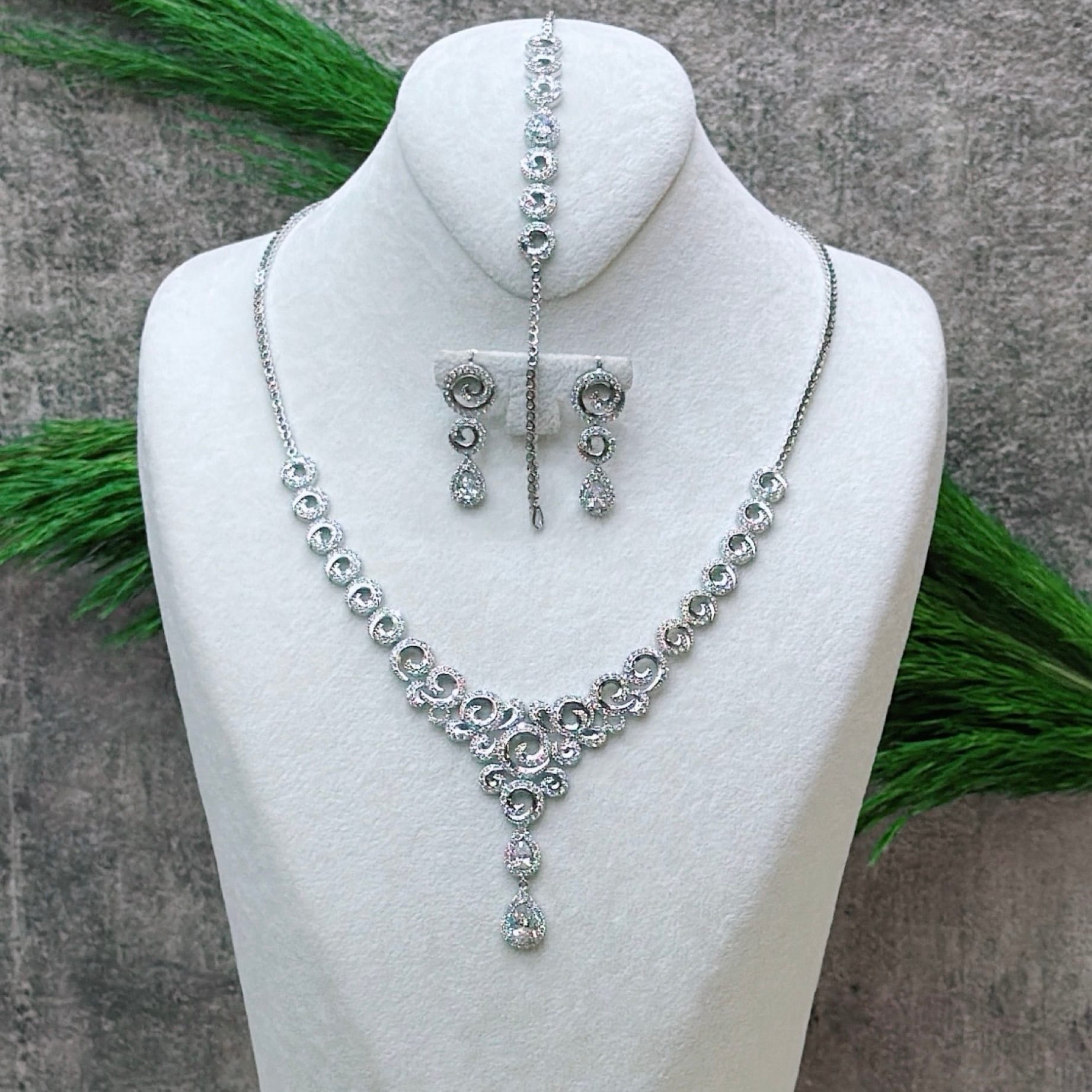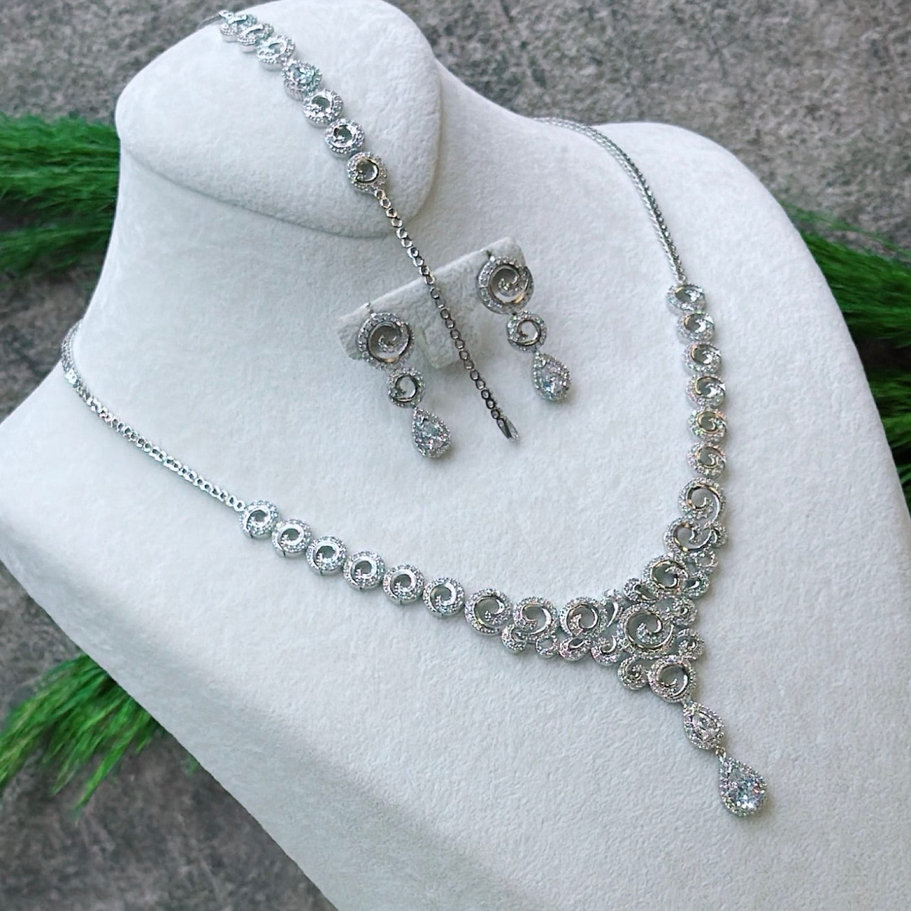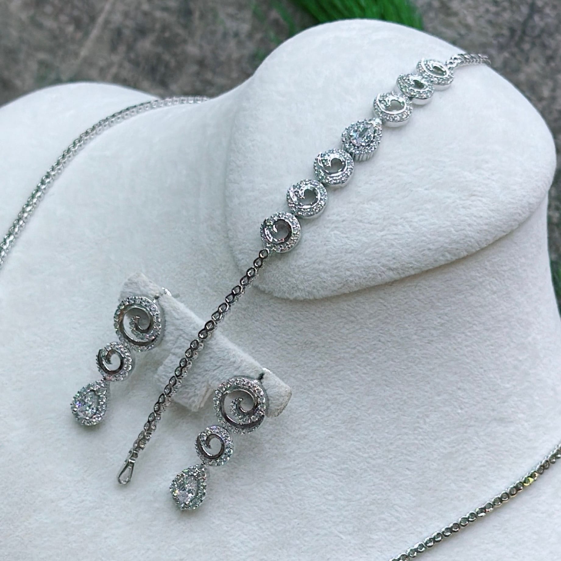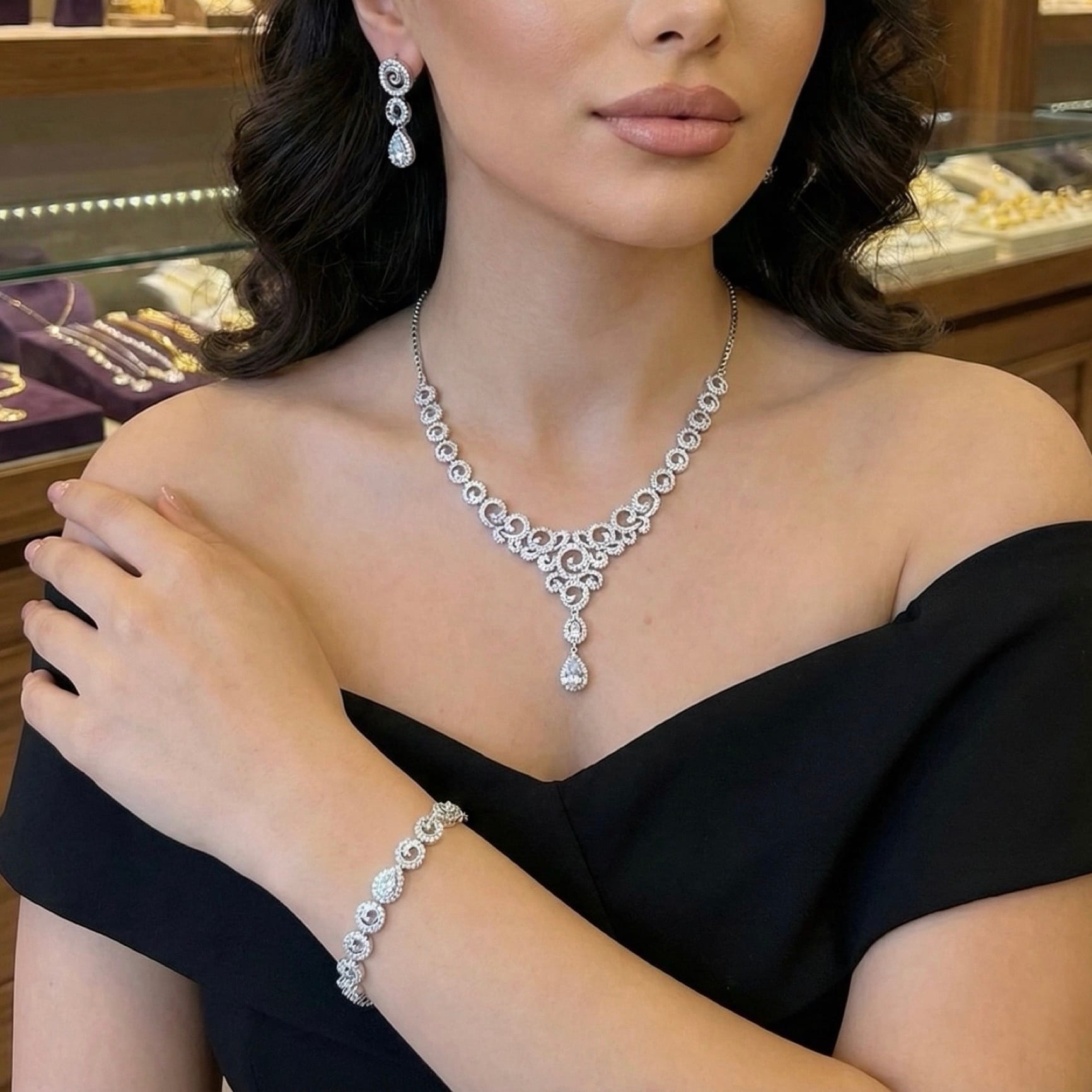 *Zirkon Taşlı Gümüş Set Takım (Gerdanlık-Bileklik-Küpe)