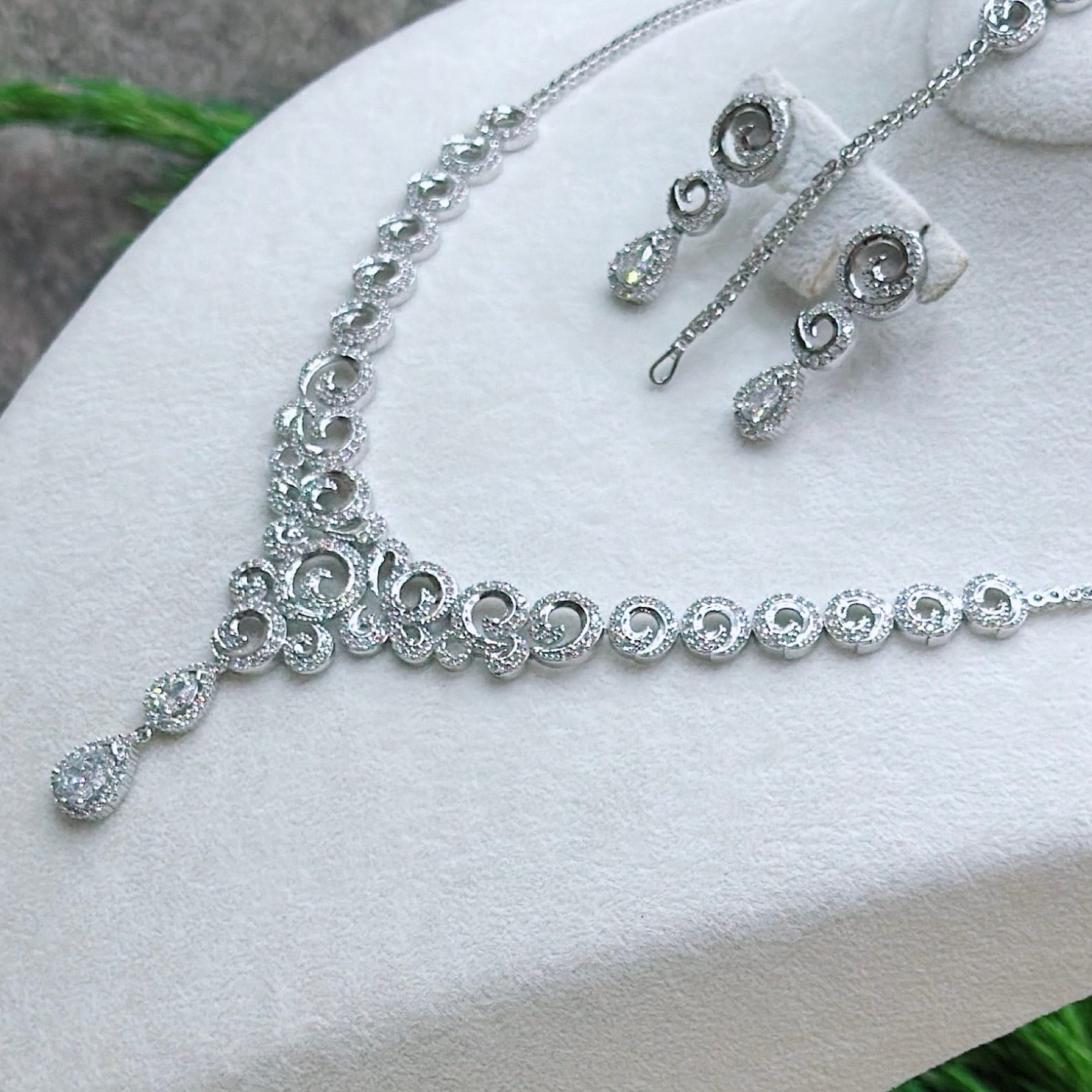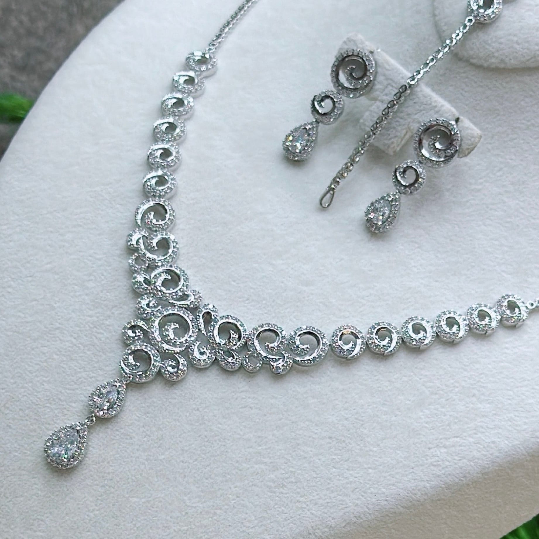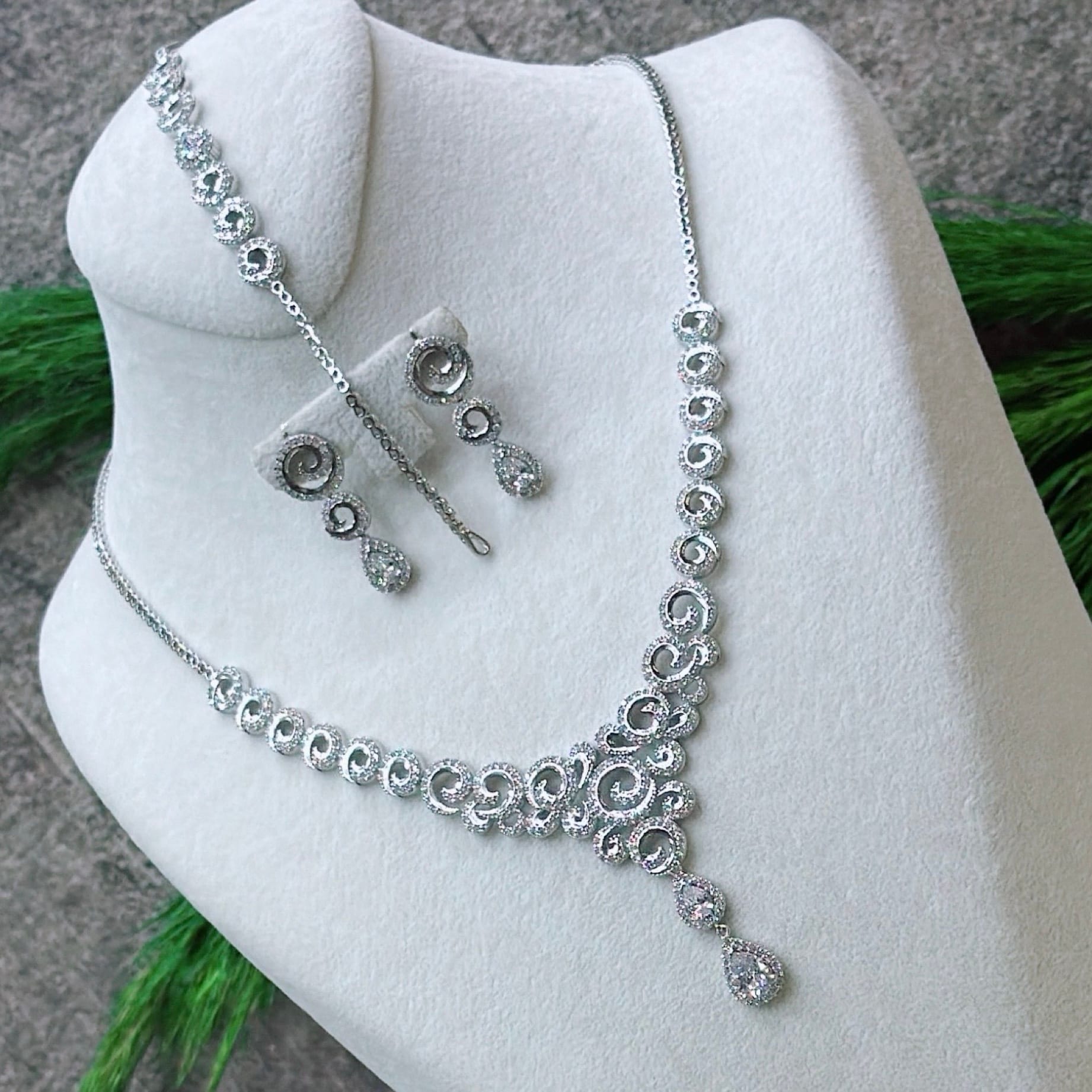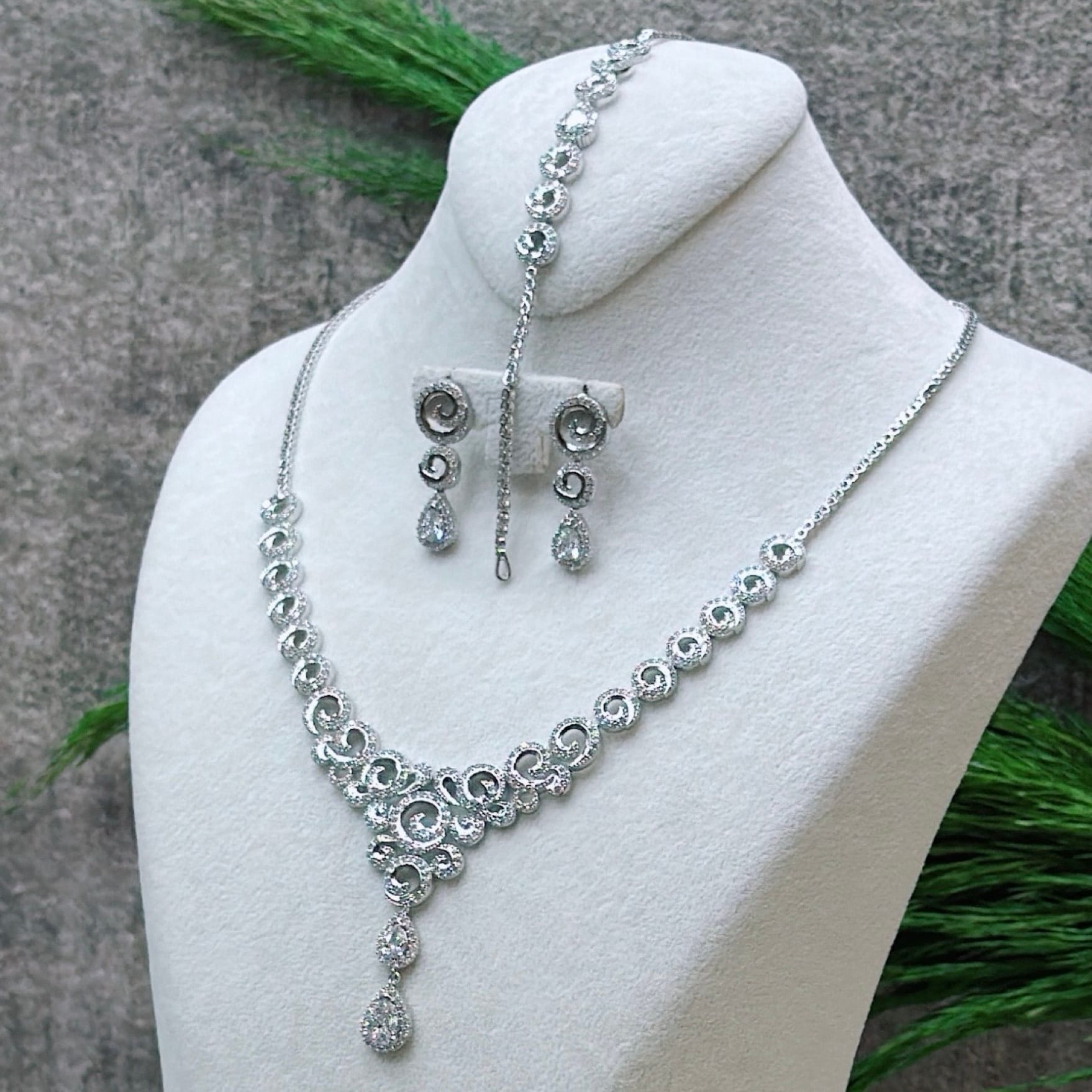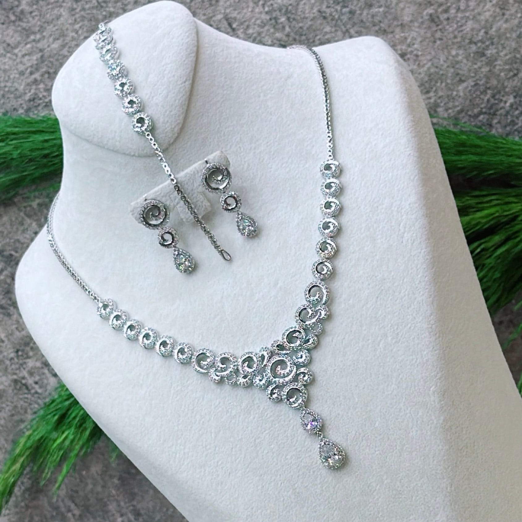 *Zirkon Taşlı Gümüş Set Takım (Gerdanlık-Bileklik-Küpe)
