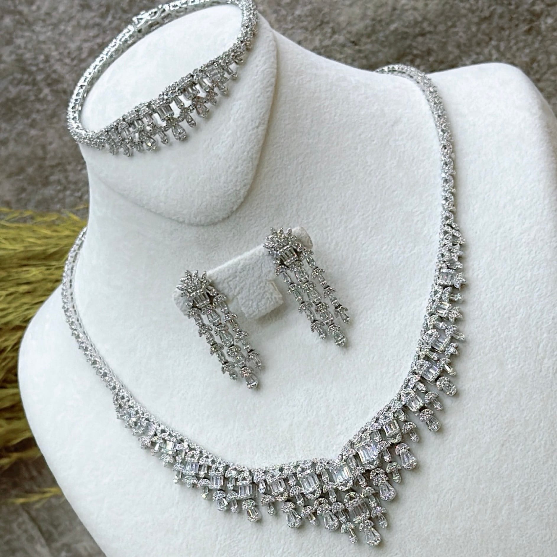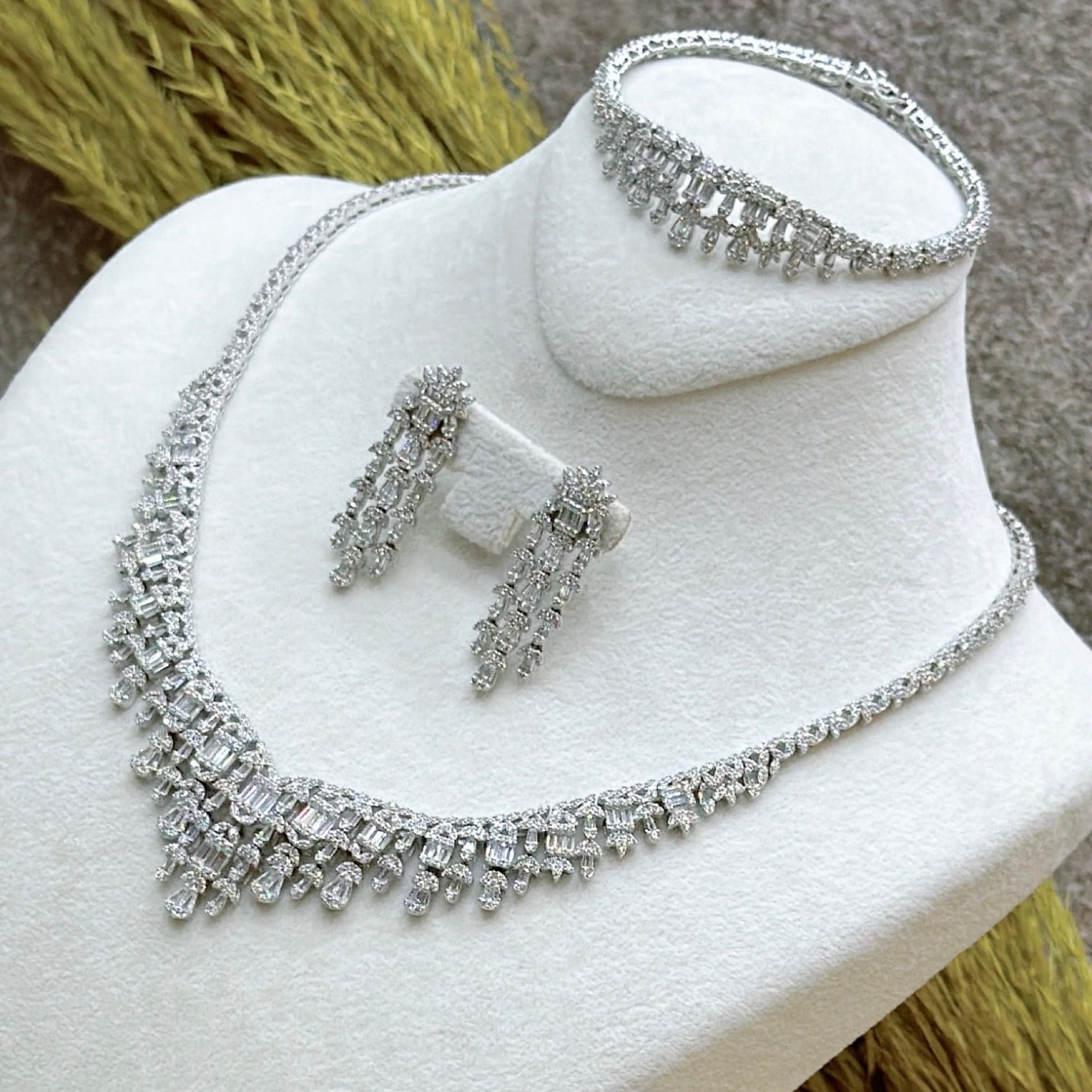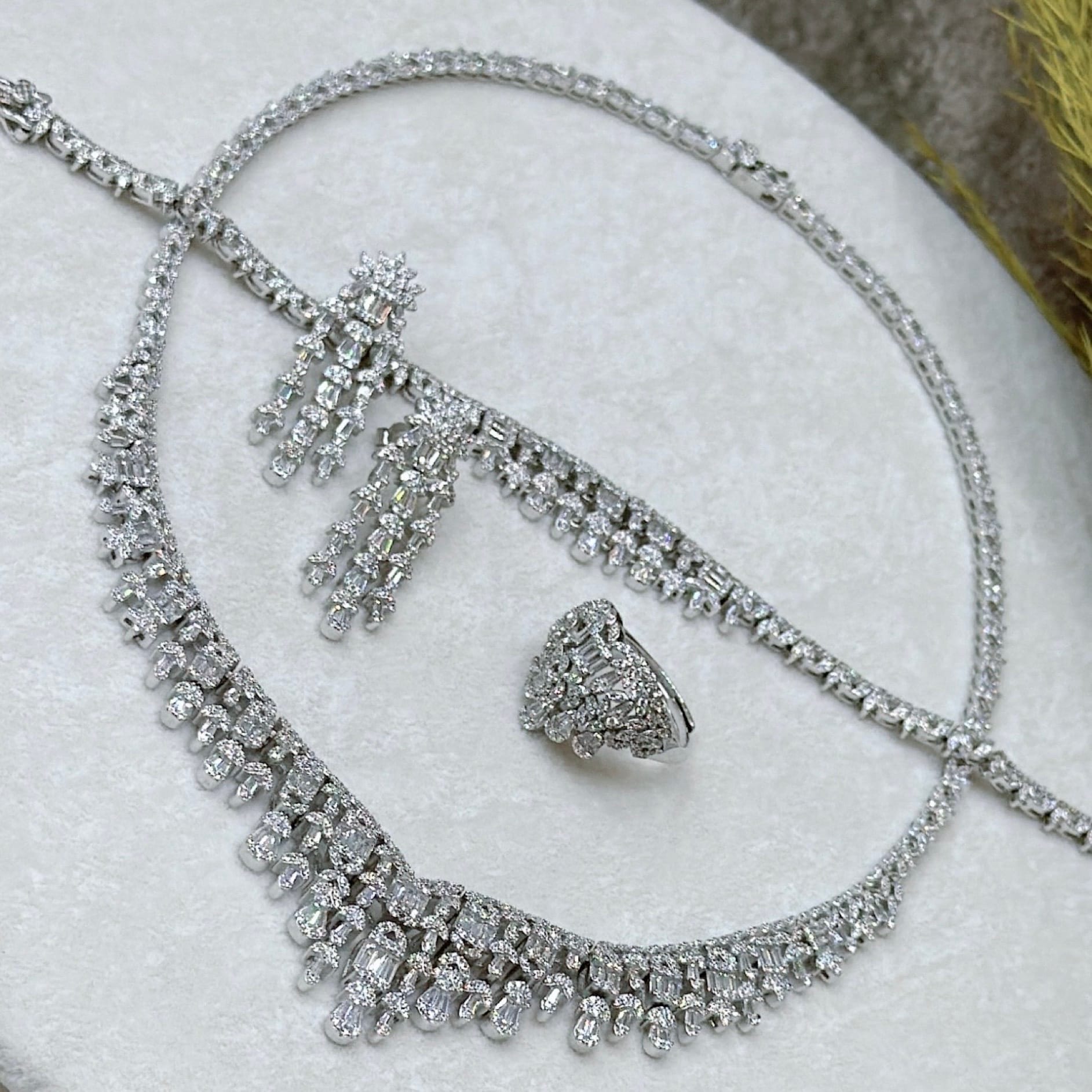 *Zirkon Taşlı Gümüş Set Takım (Gerdanlık-Bileklik-Yüzük-Küpe)