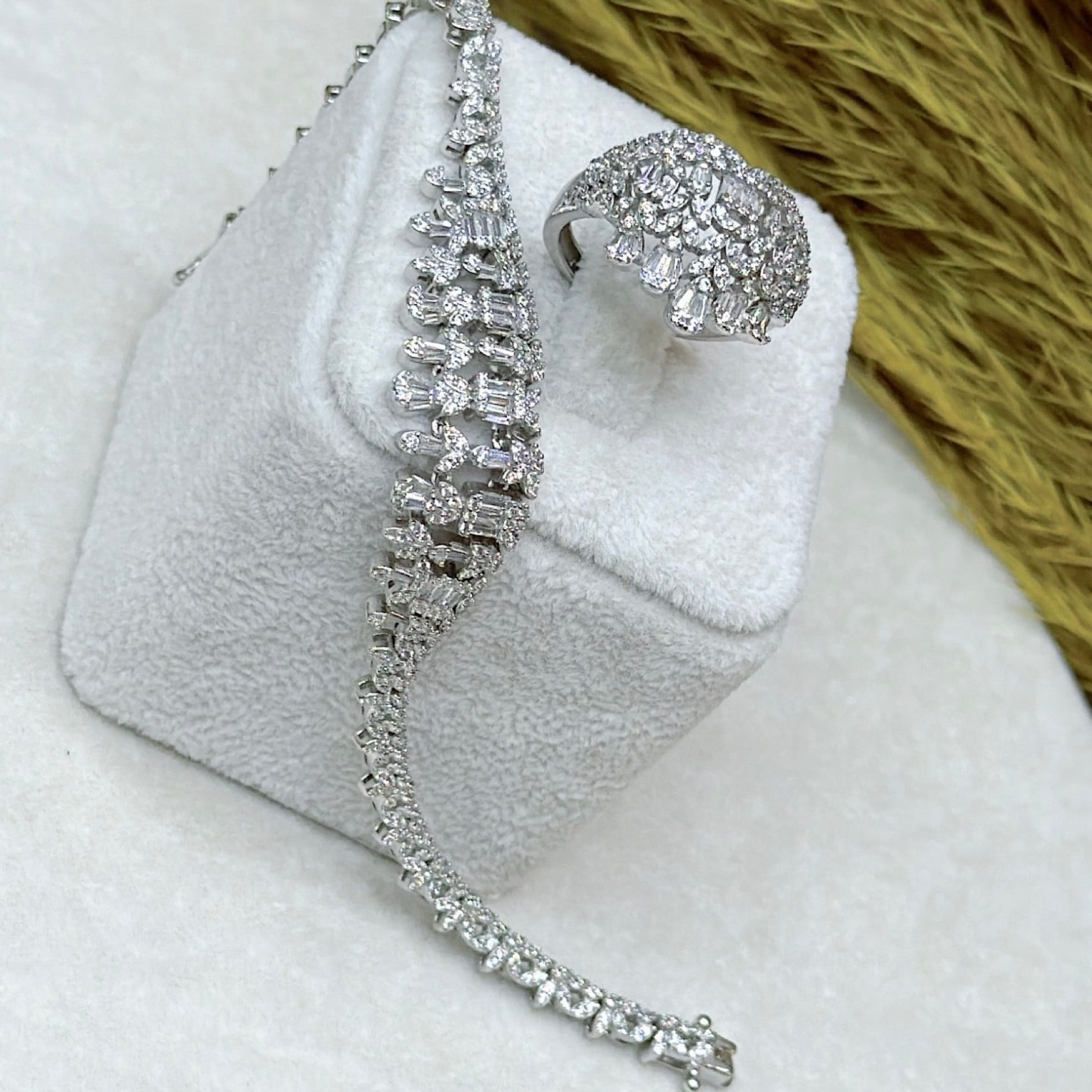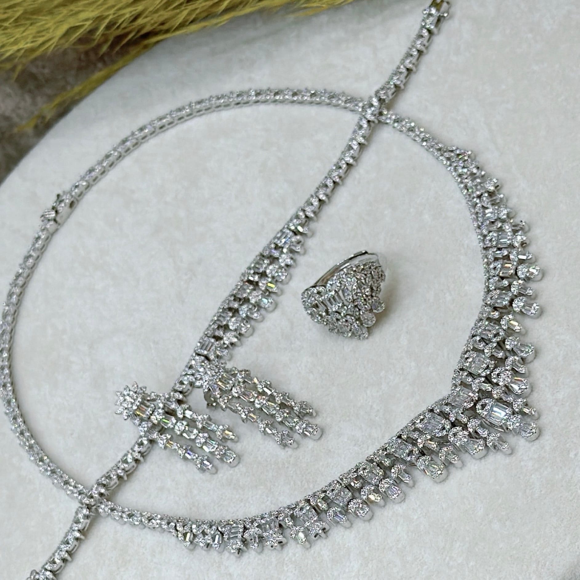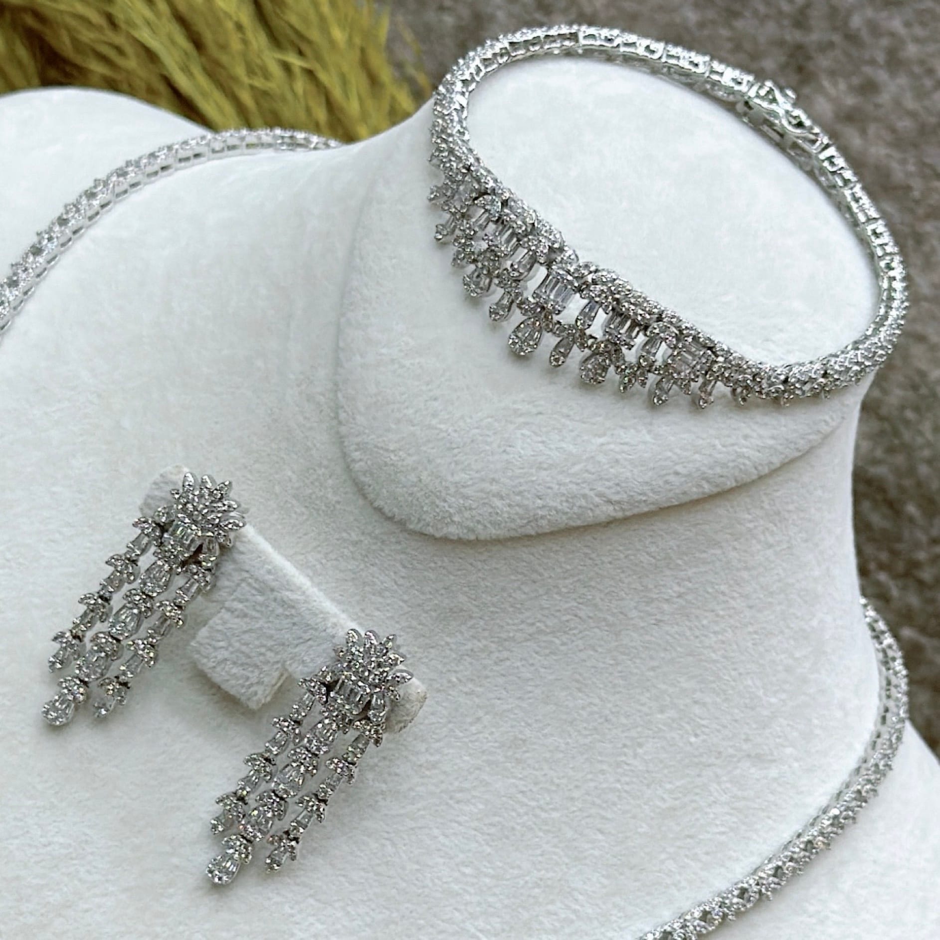 *Zirkon Taşlı Gümüş Set Takım (Gerdanlık-Bileklik-Yüzük-Küpe)