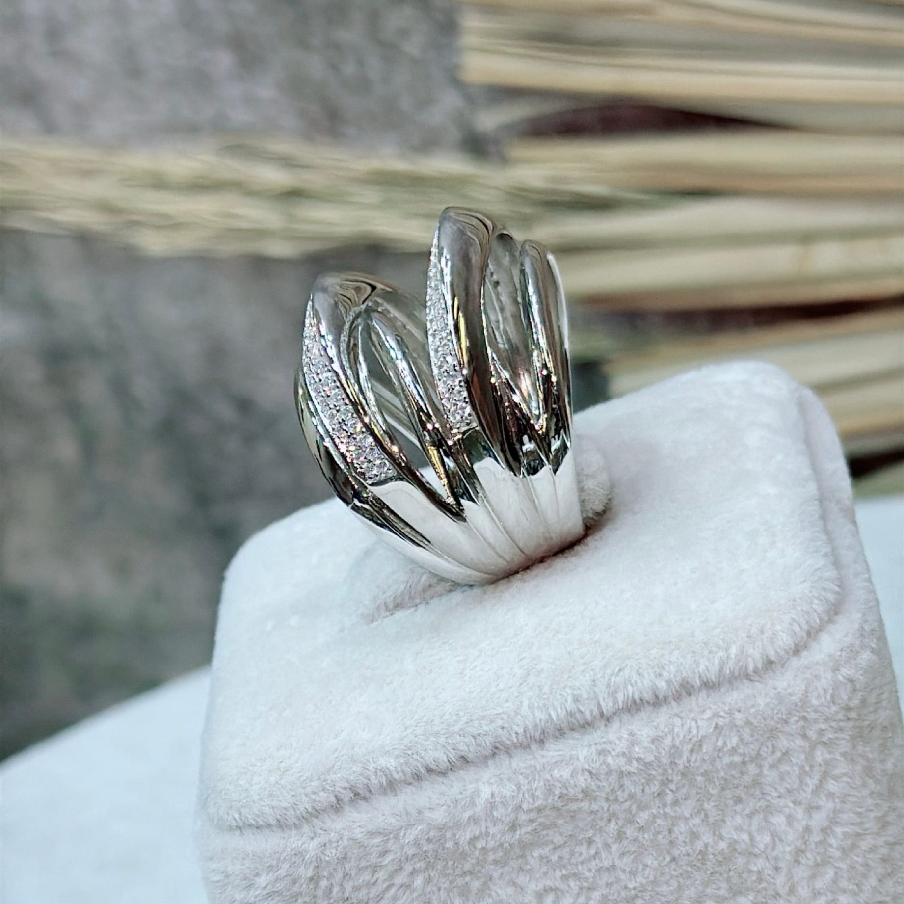 Pırlanta Montür Yaprak Model Gümüş Yüzük