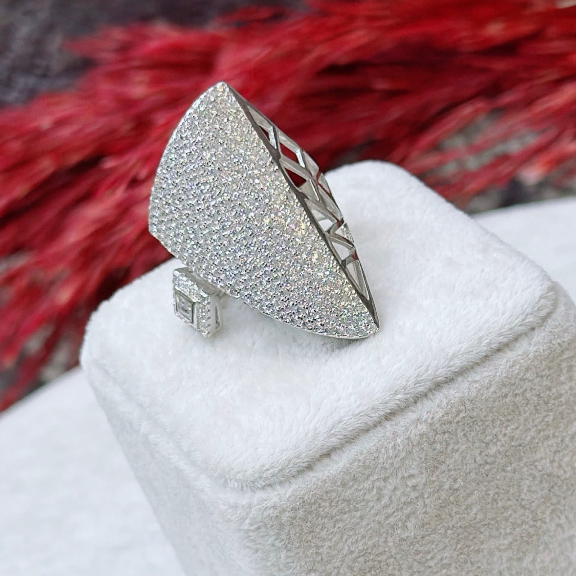 Pırlanta Montür Damla Sarmal Gümüş Yüzük