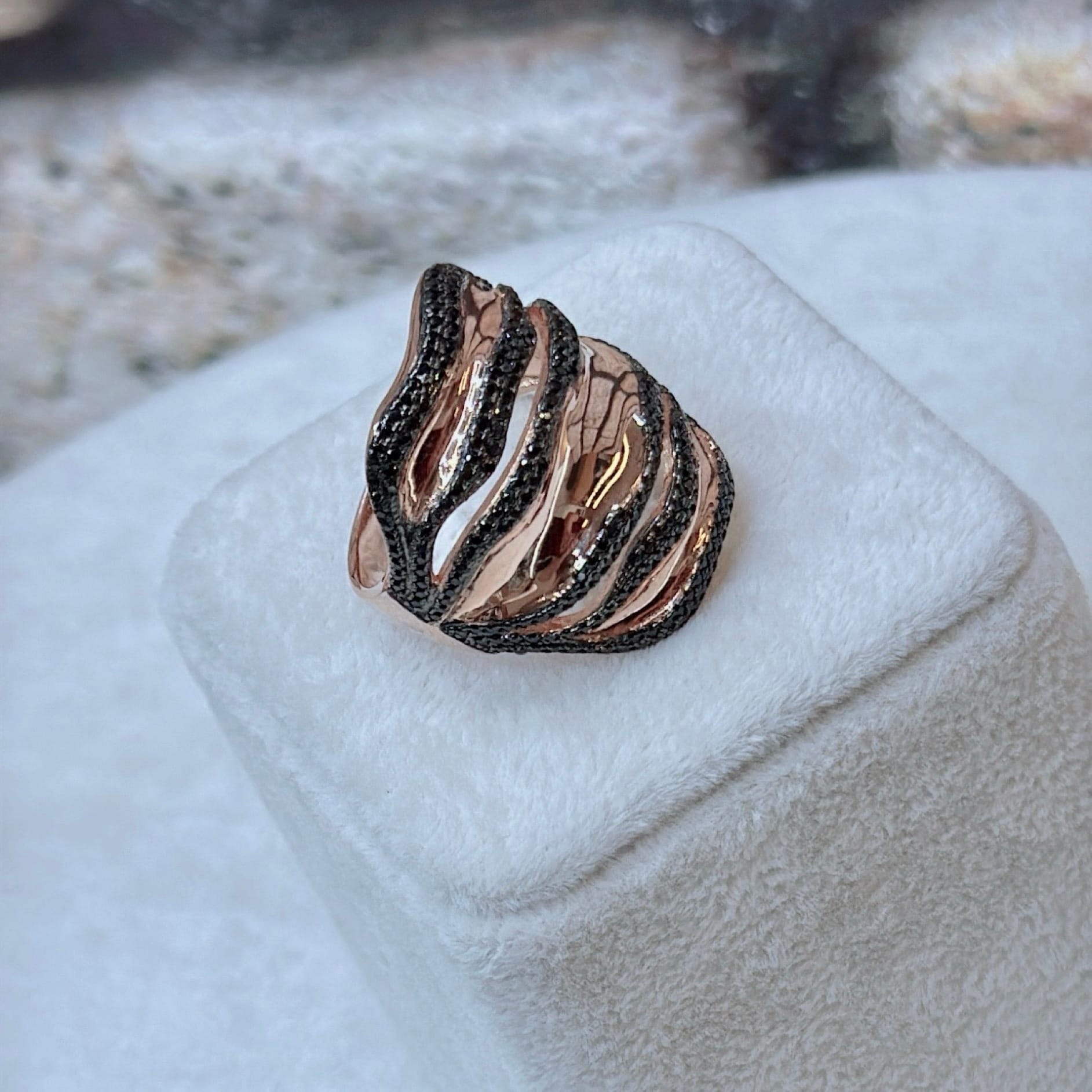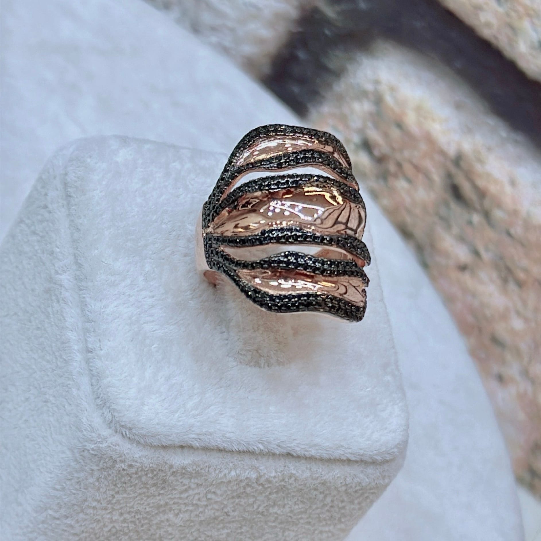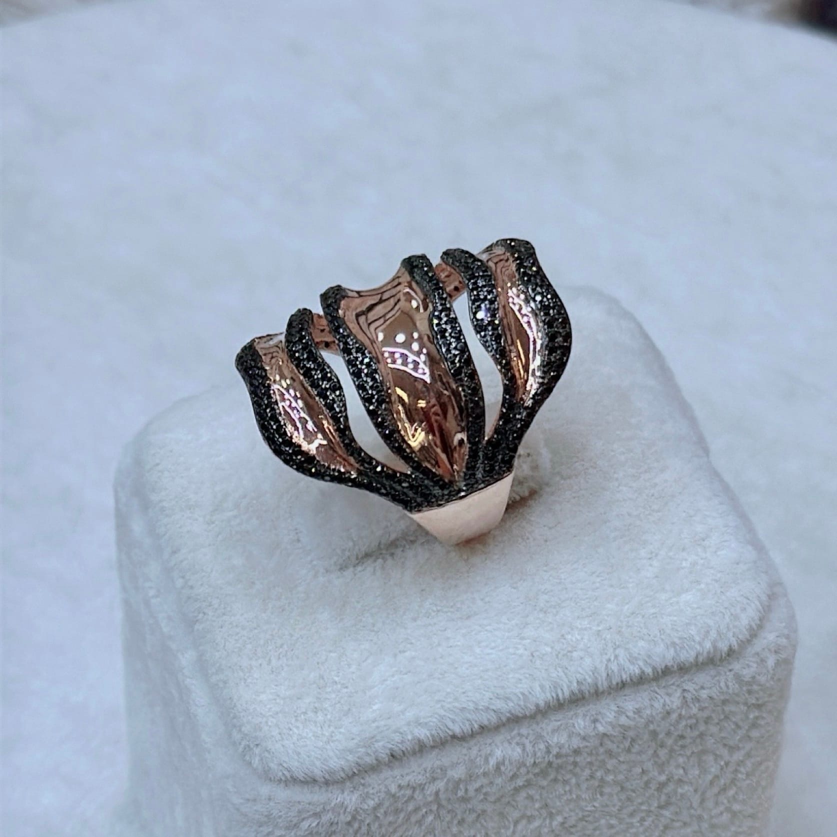 Rosegold Gümüş Siyah Taşlı Yüzük