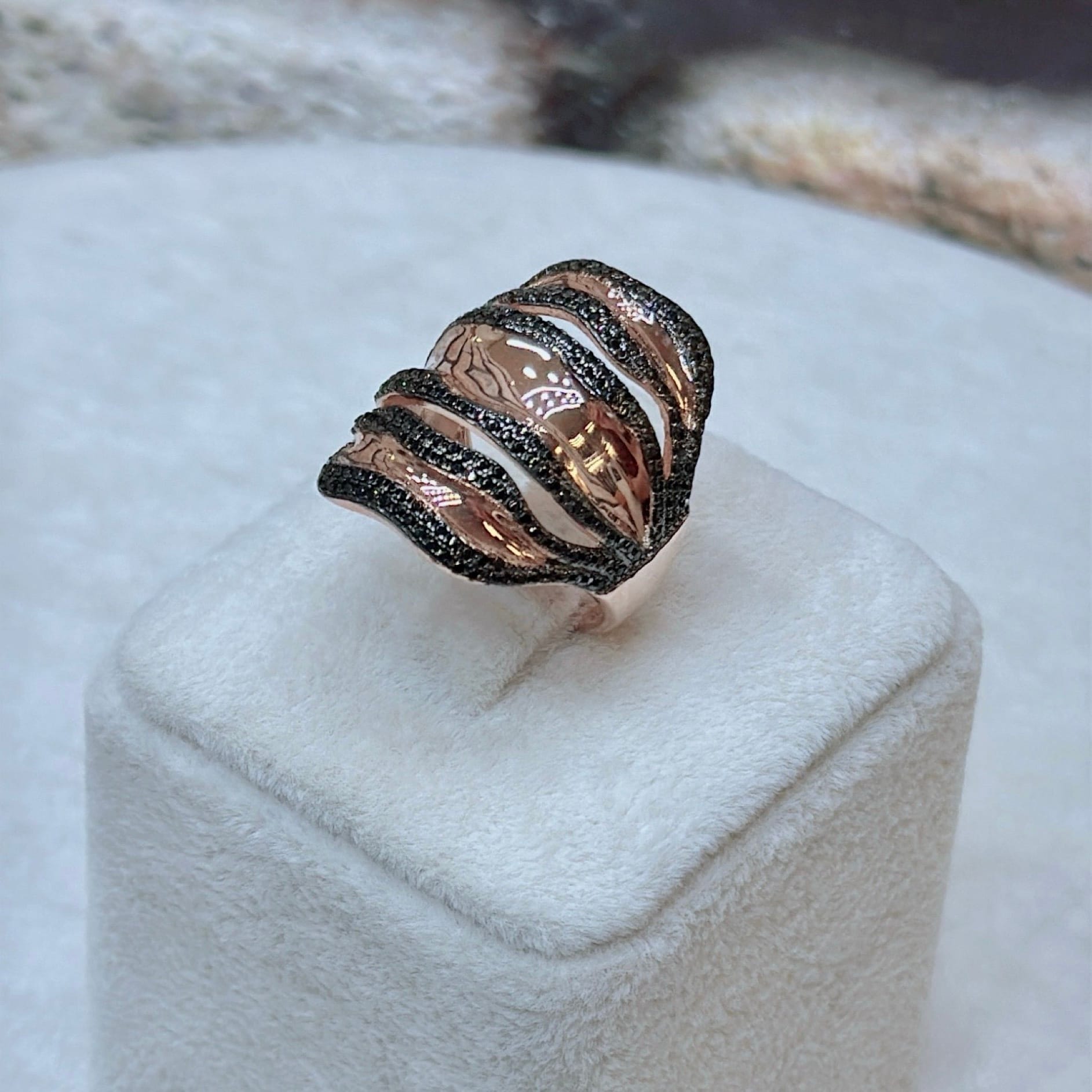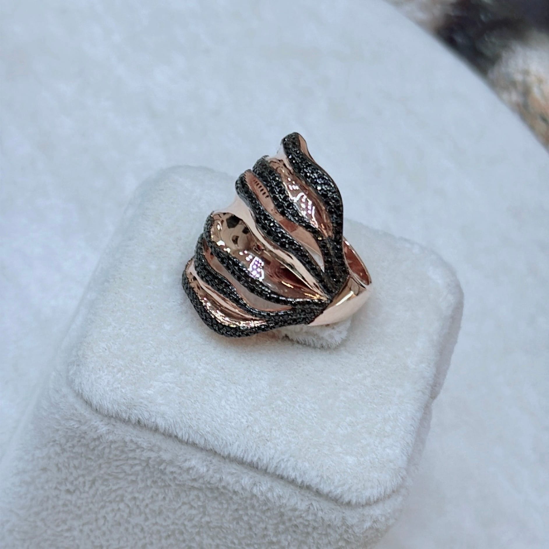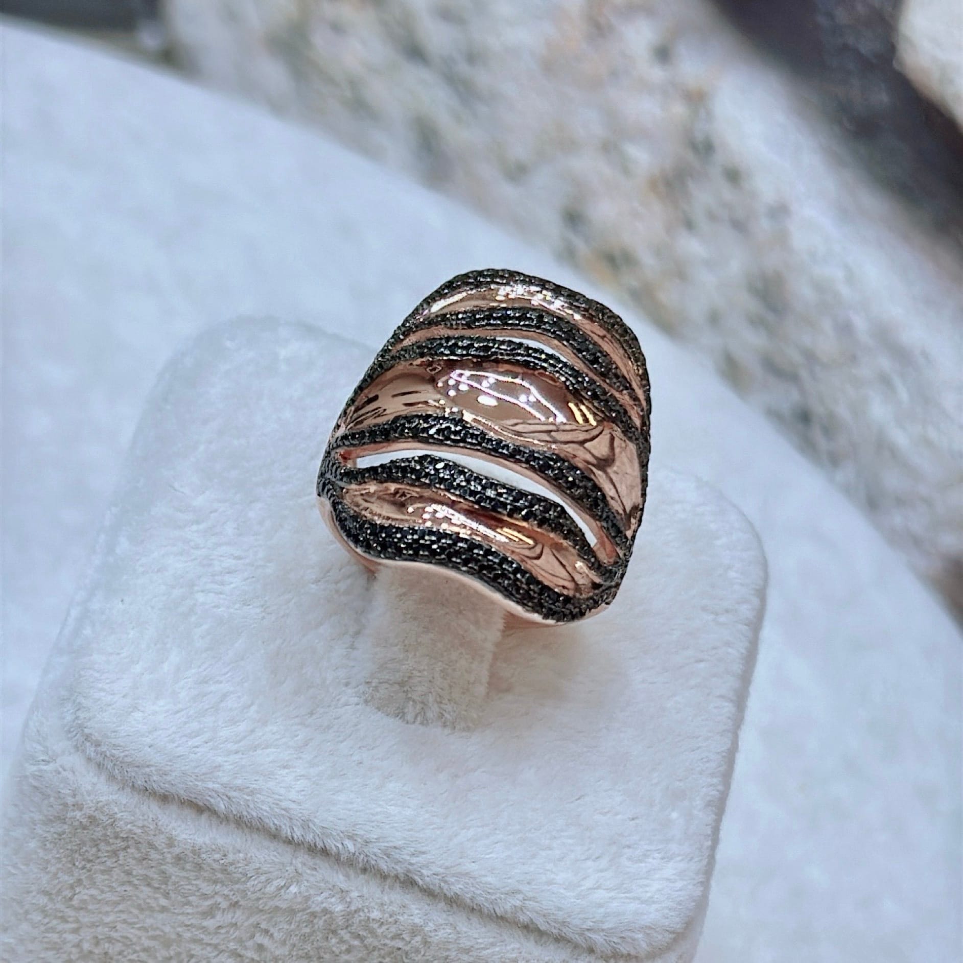 Rosegold Gümüş Siyah Taşlı Yüzük