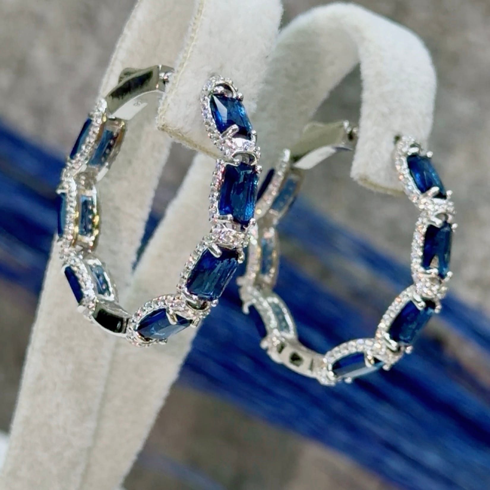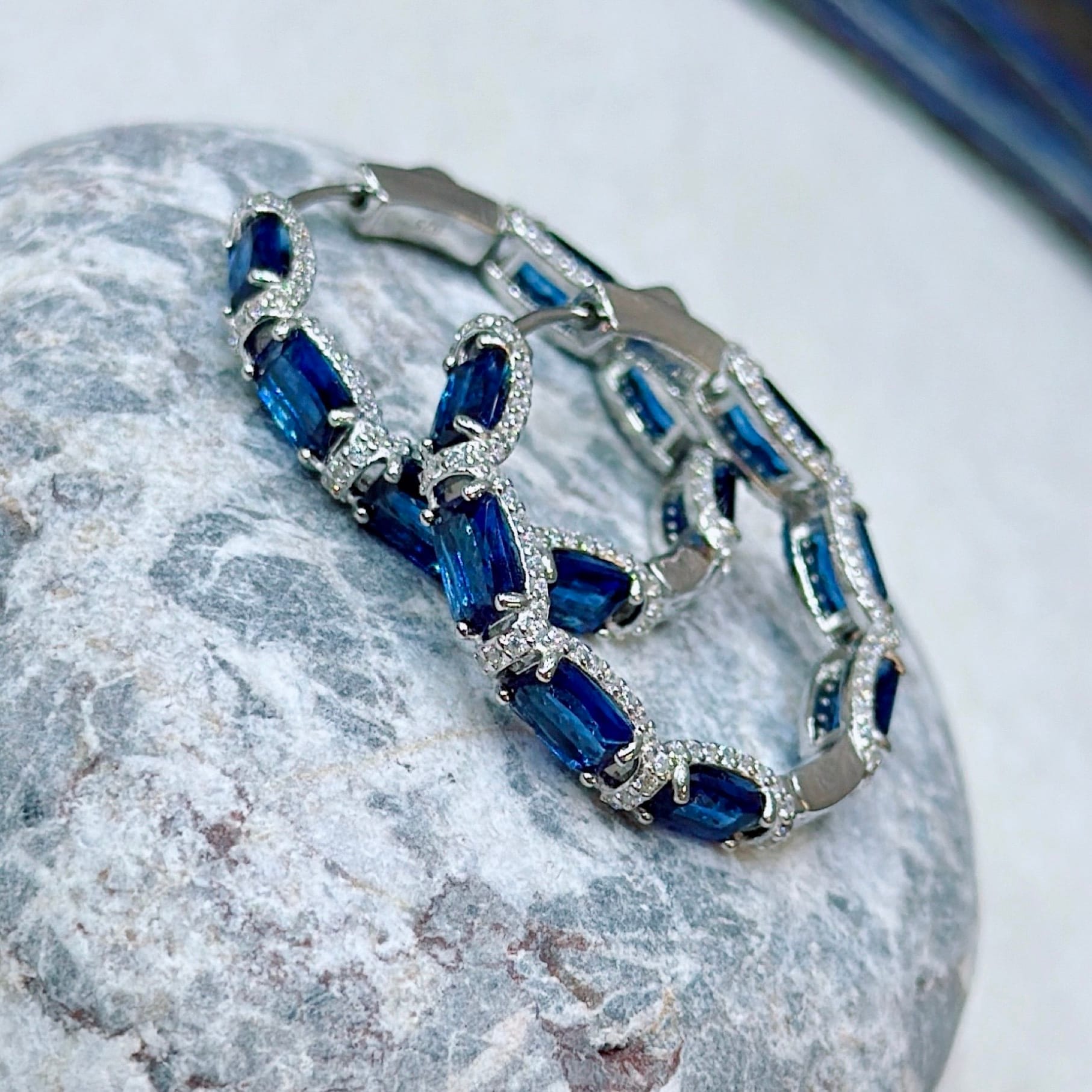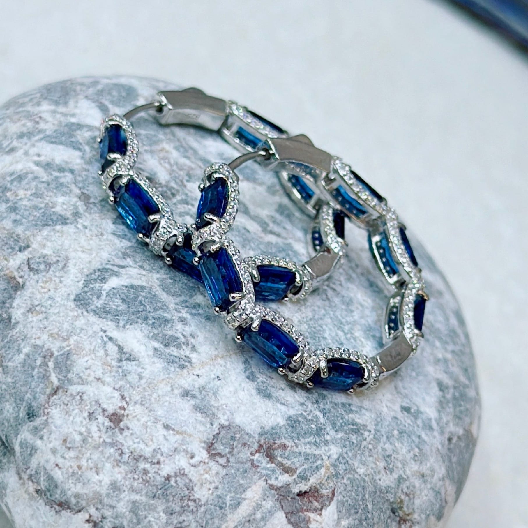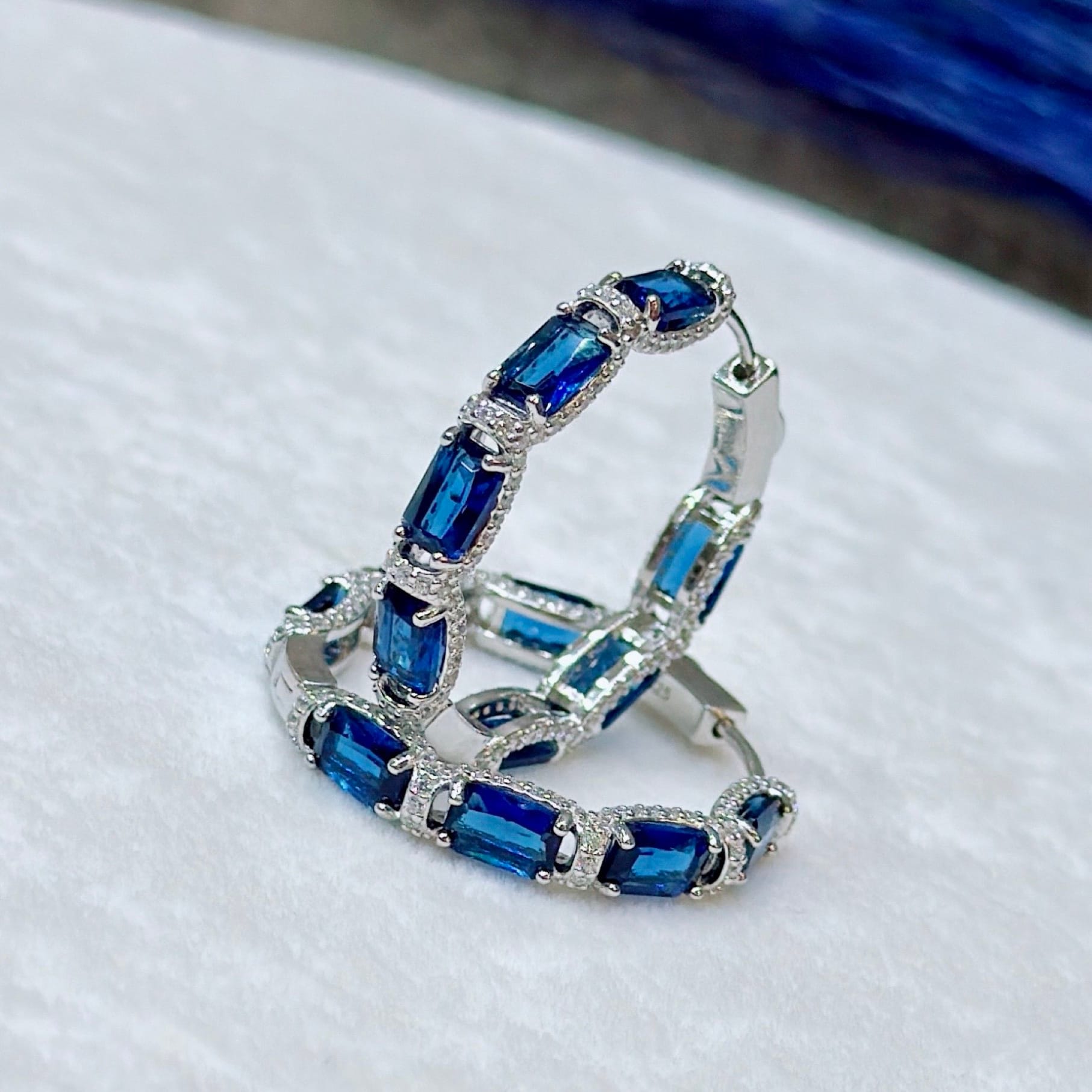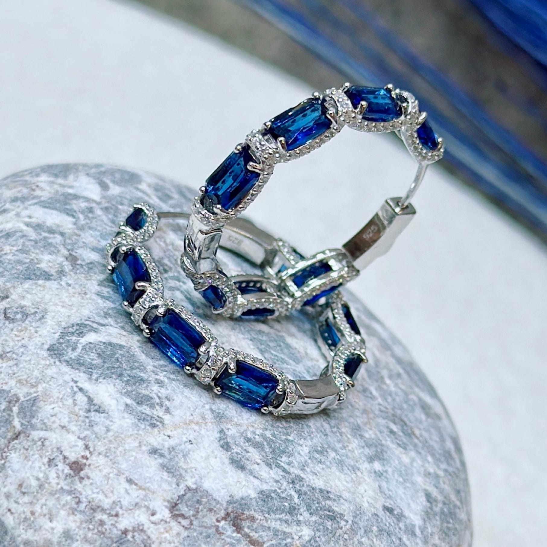*Safir Renk Zirkon Taşlı Pırlanta Model Gümüş Küpe