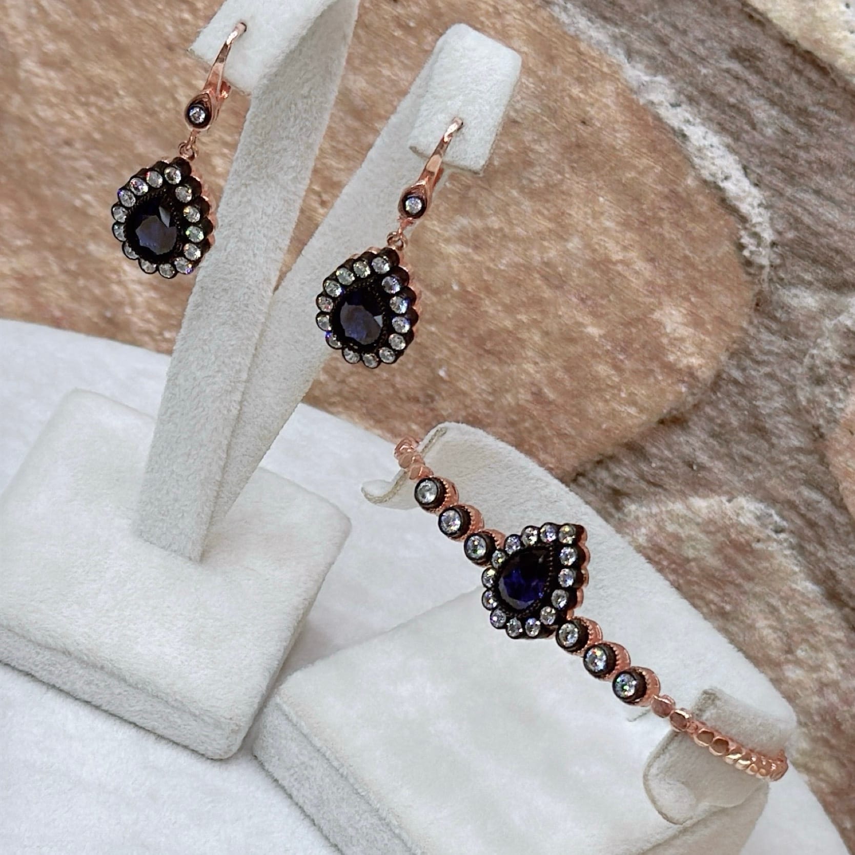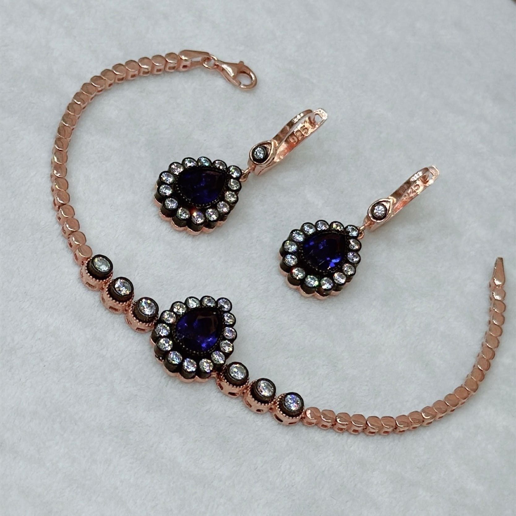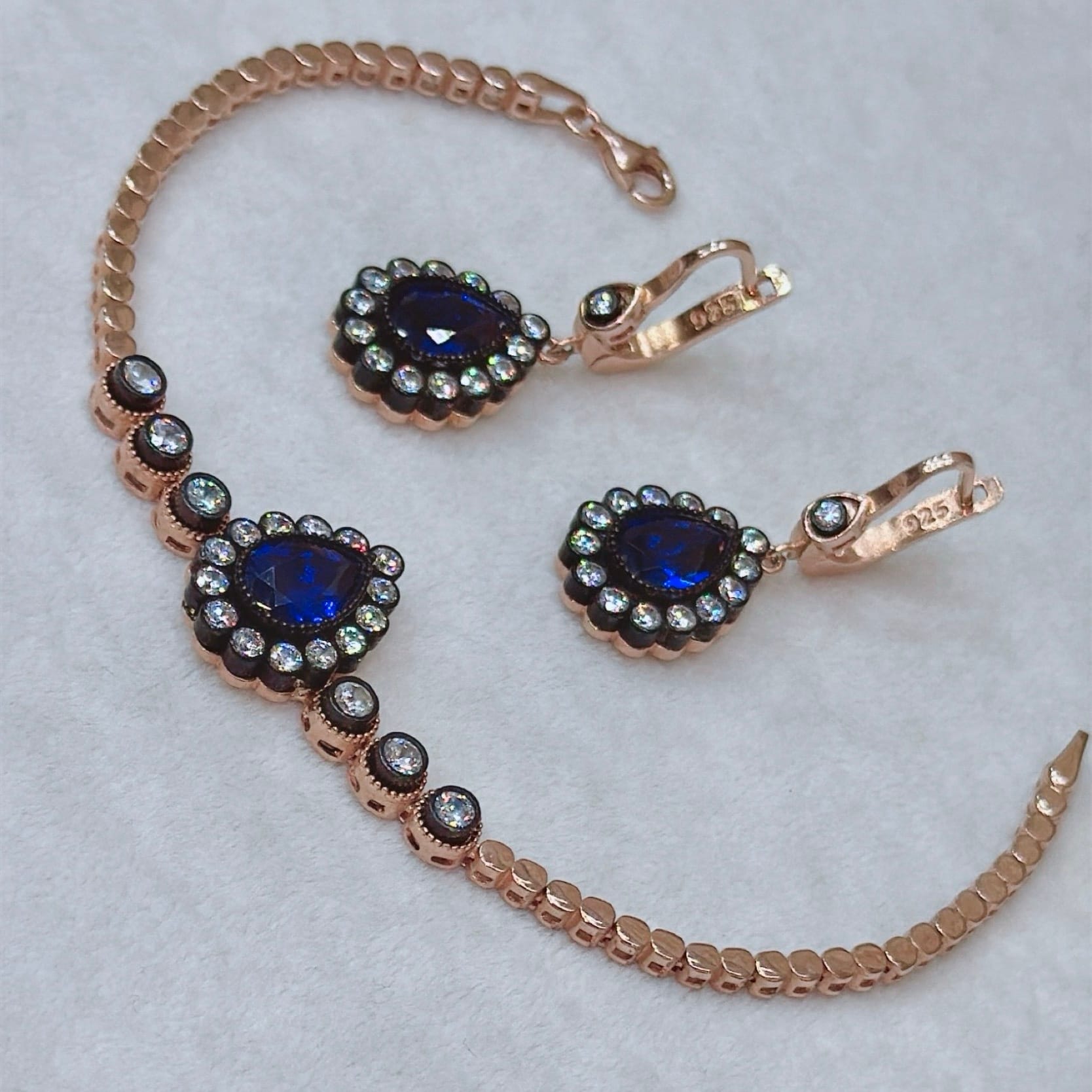 Safir Renk Damla Model Rosegold Gümüş Takım