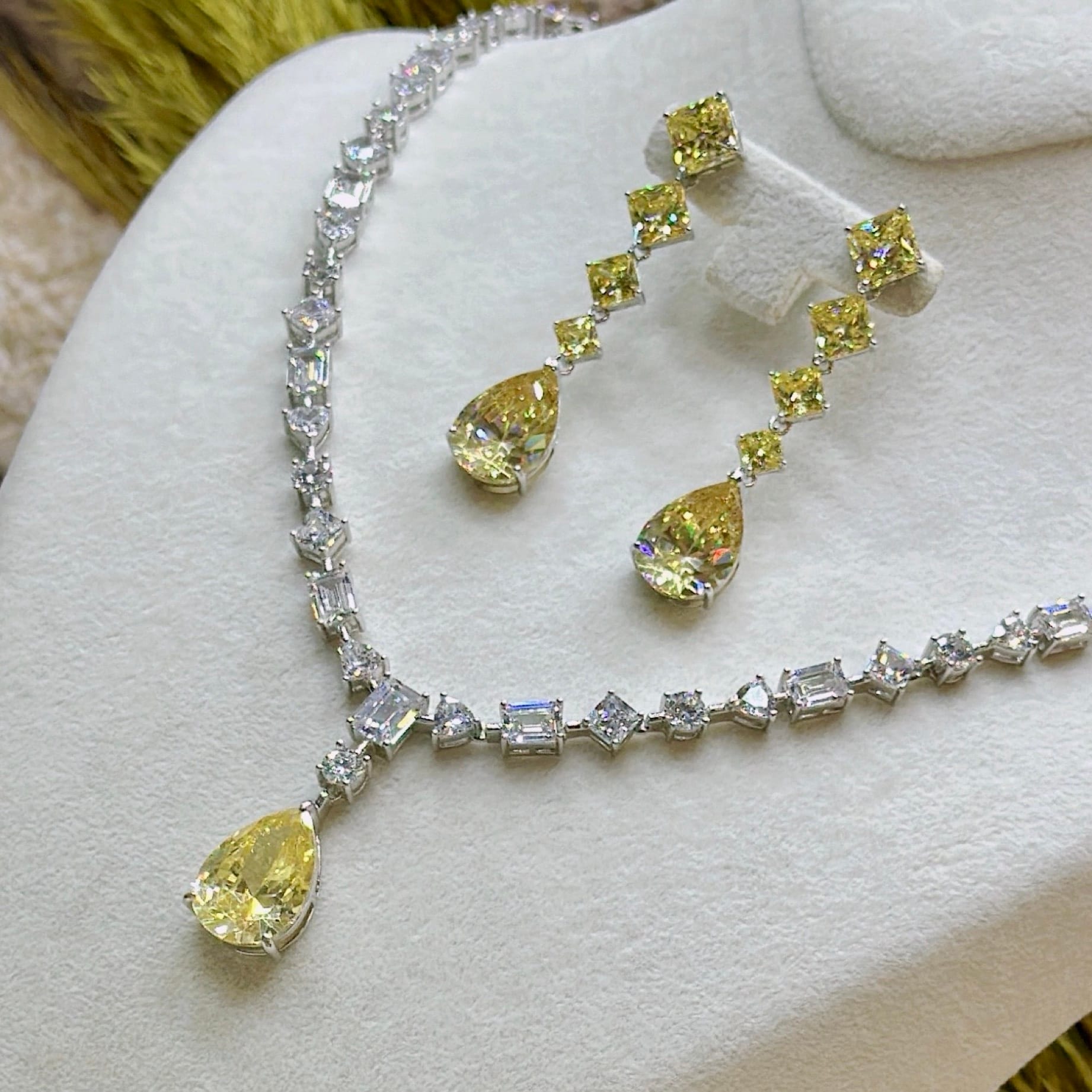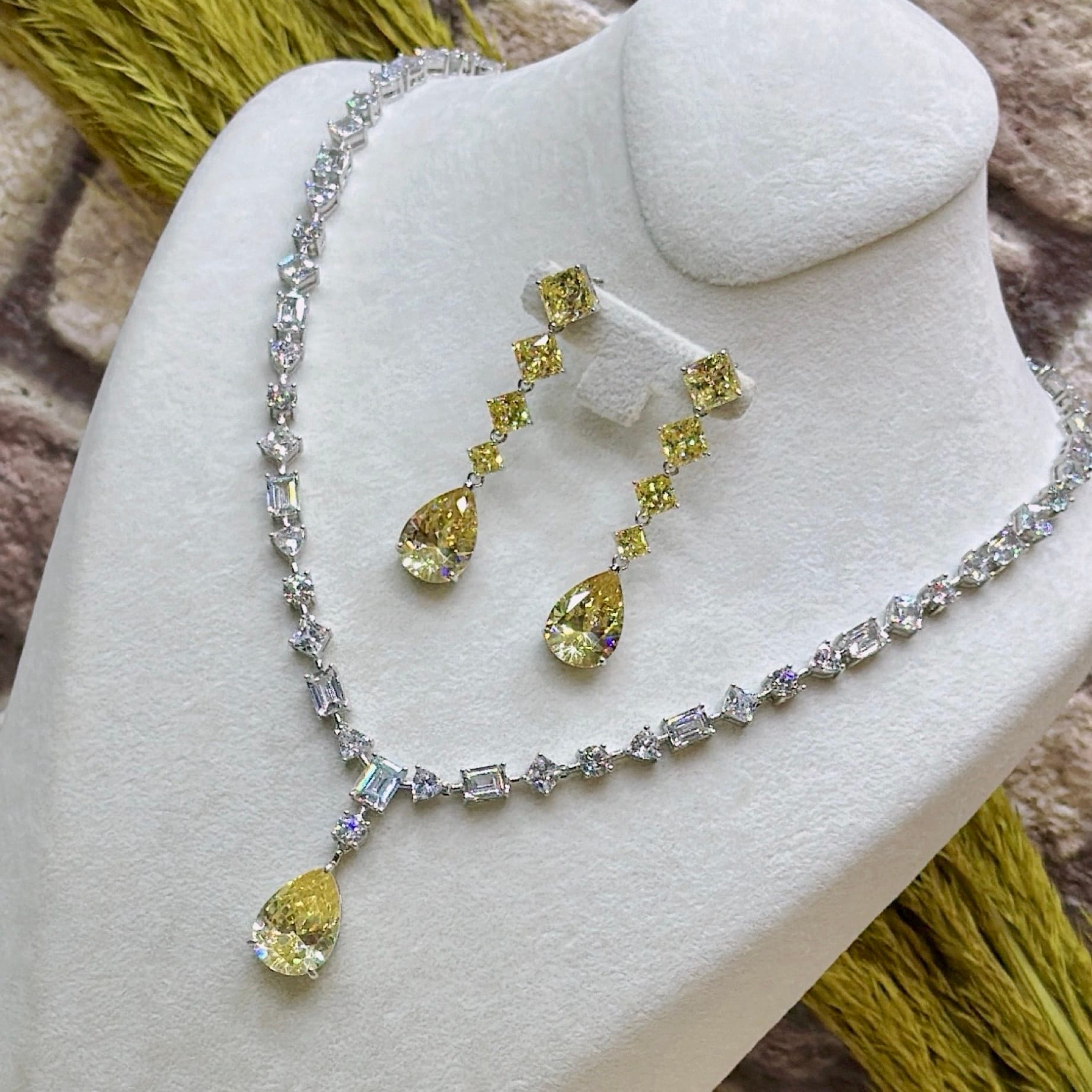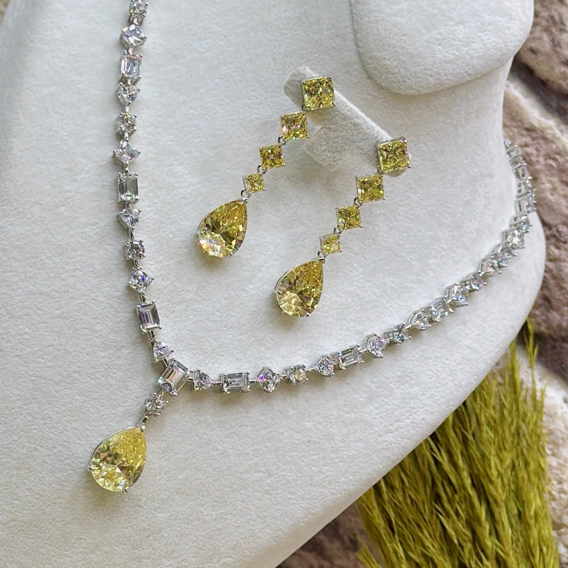 Sarı Sitrin Taşlı Gerdanlık & Küpe