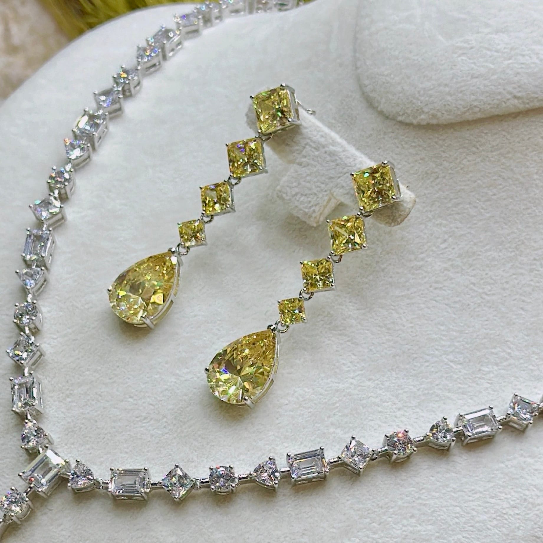 Sarı Sitrin Taşlı Pırlanta Montür Gümüş Takım
