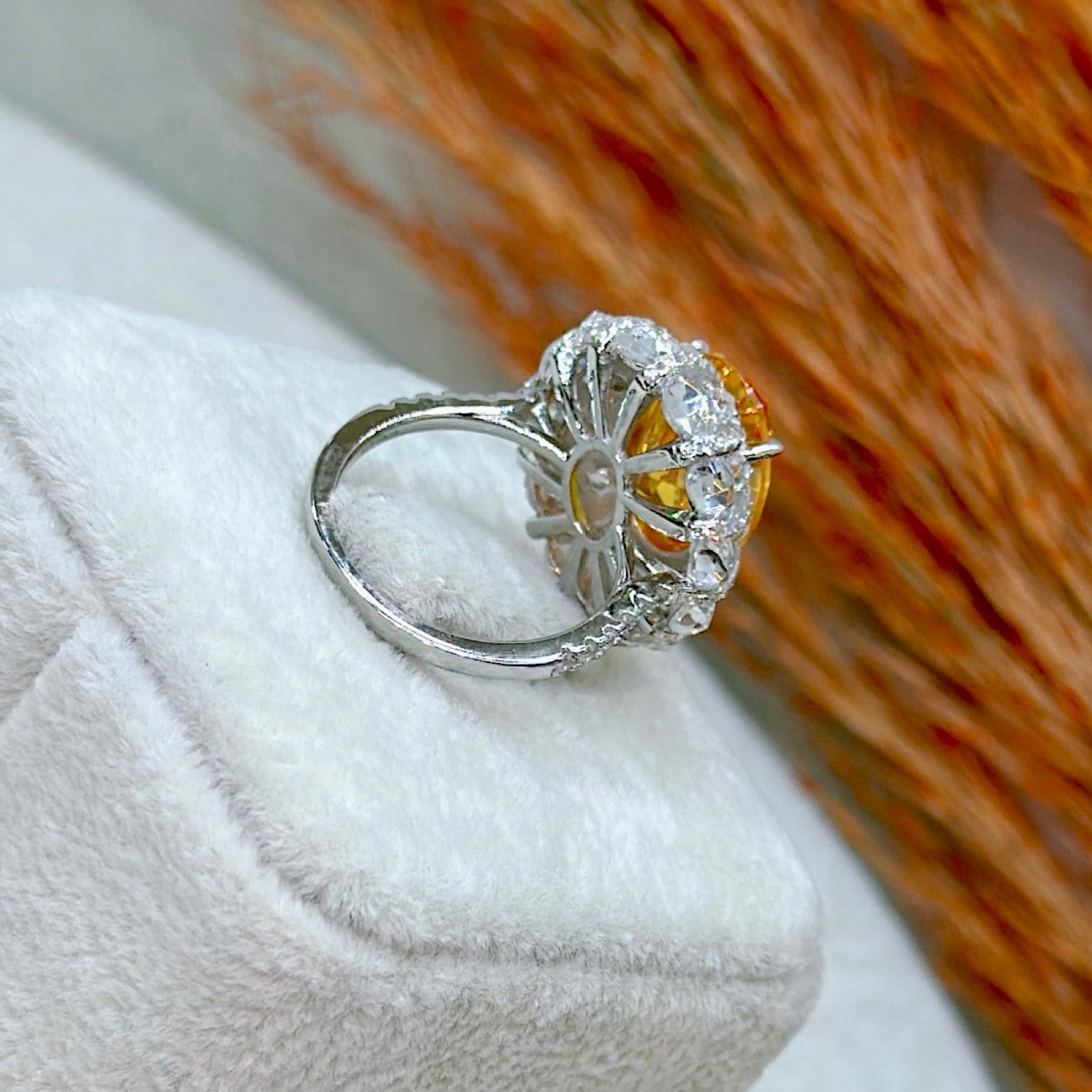 Pırlanta Montür Sarı Topaz Taşlı Gümüş Yüzük