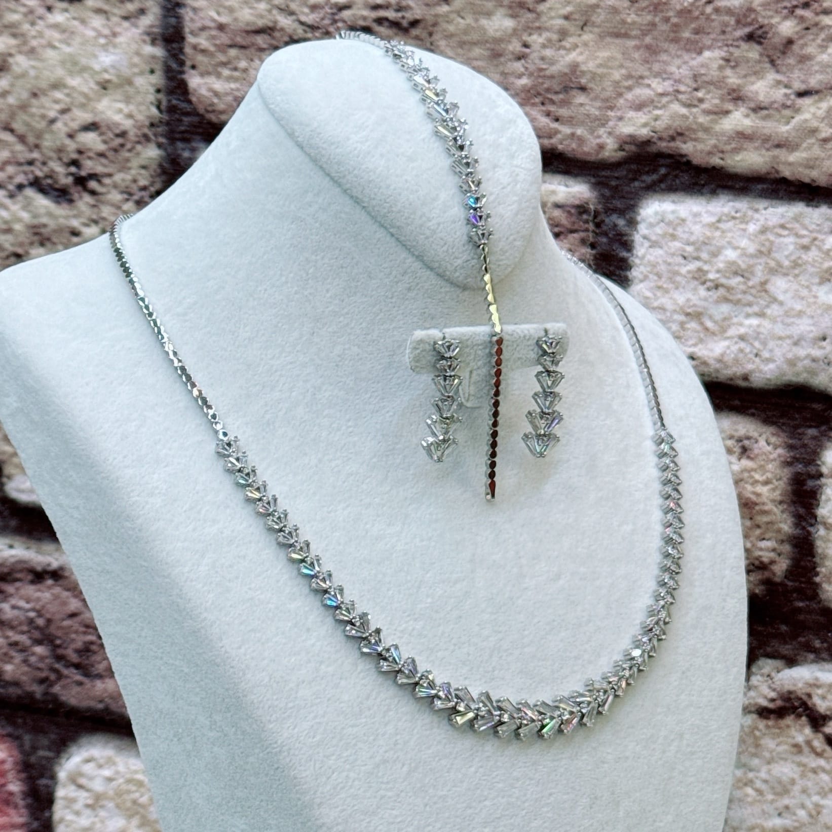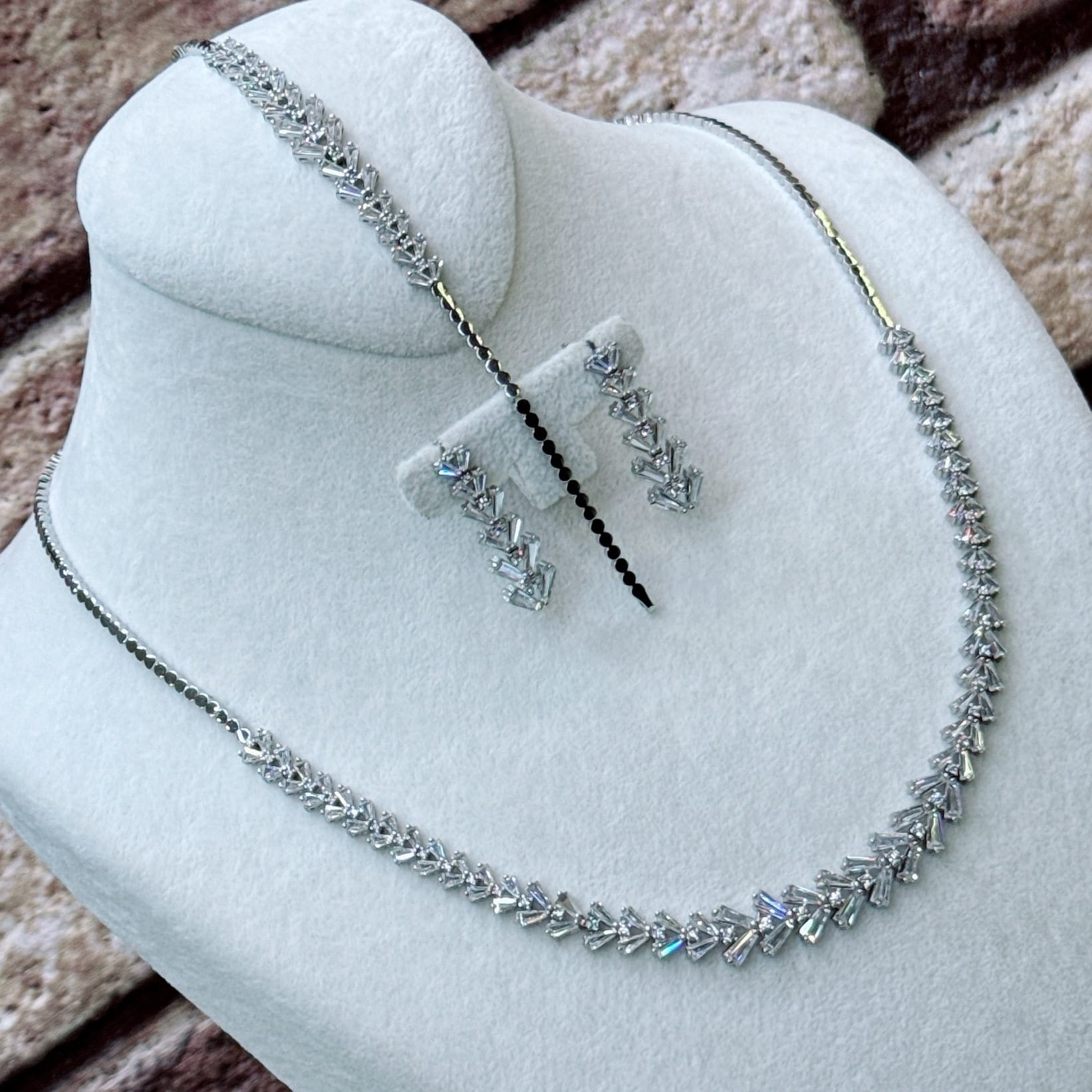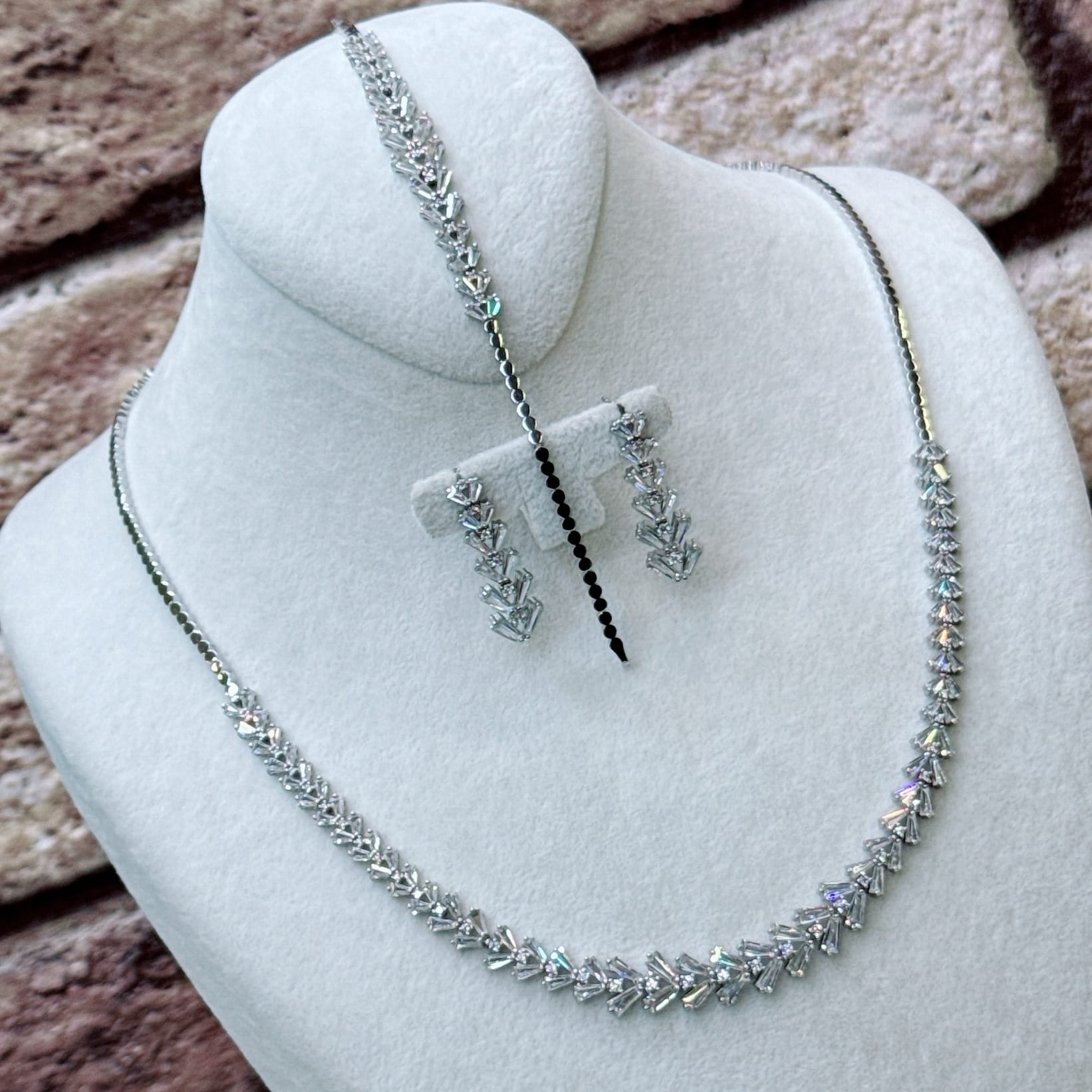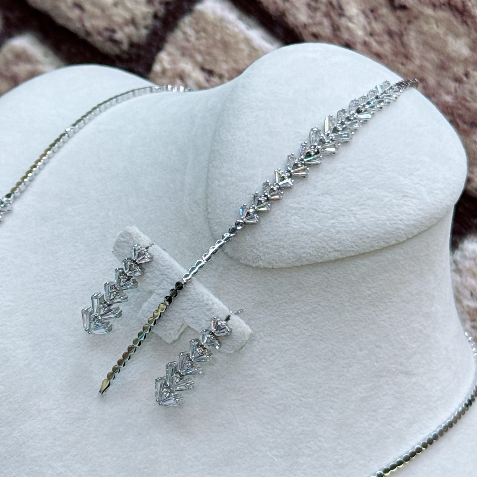 *Zirkon Taşlı Model Gümüş Set Takım (Gerdanlık-Bileklik-Küpe)