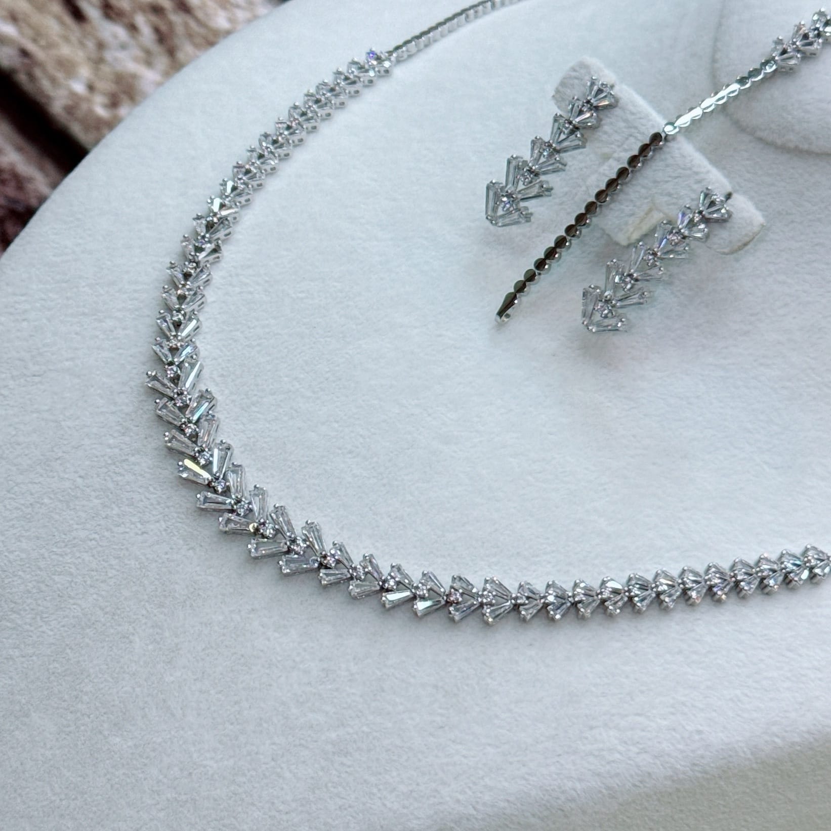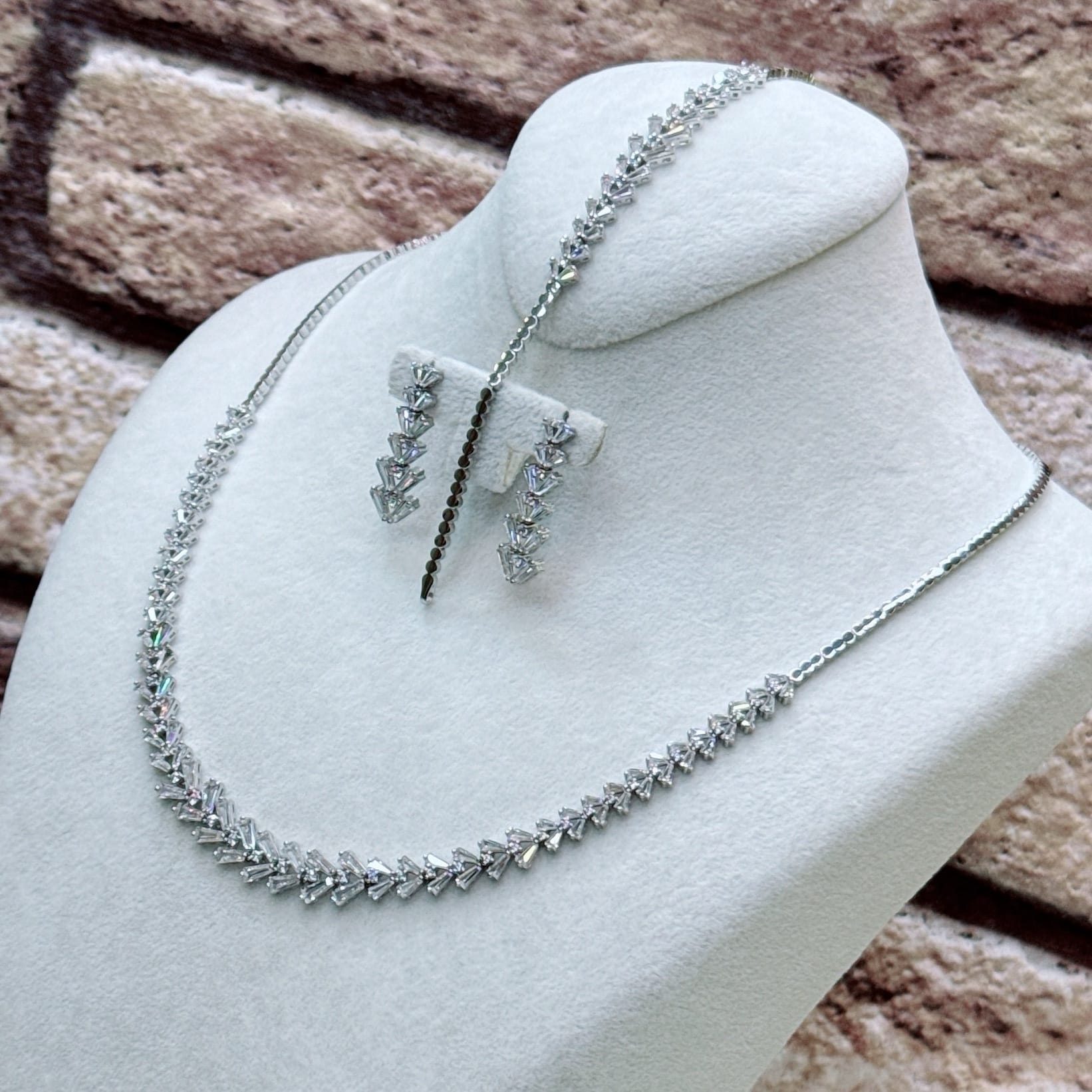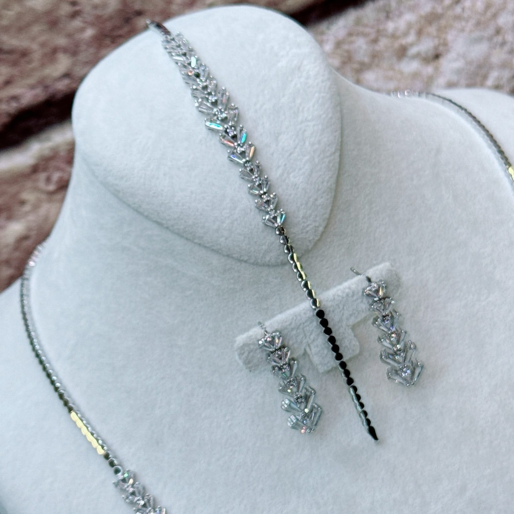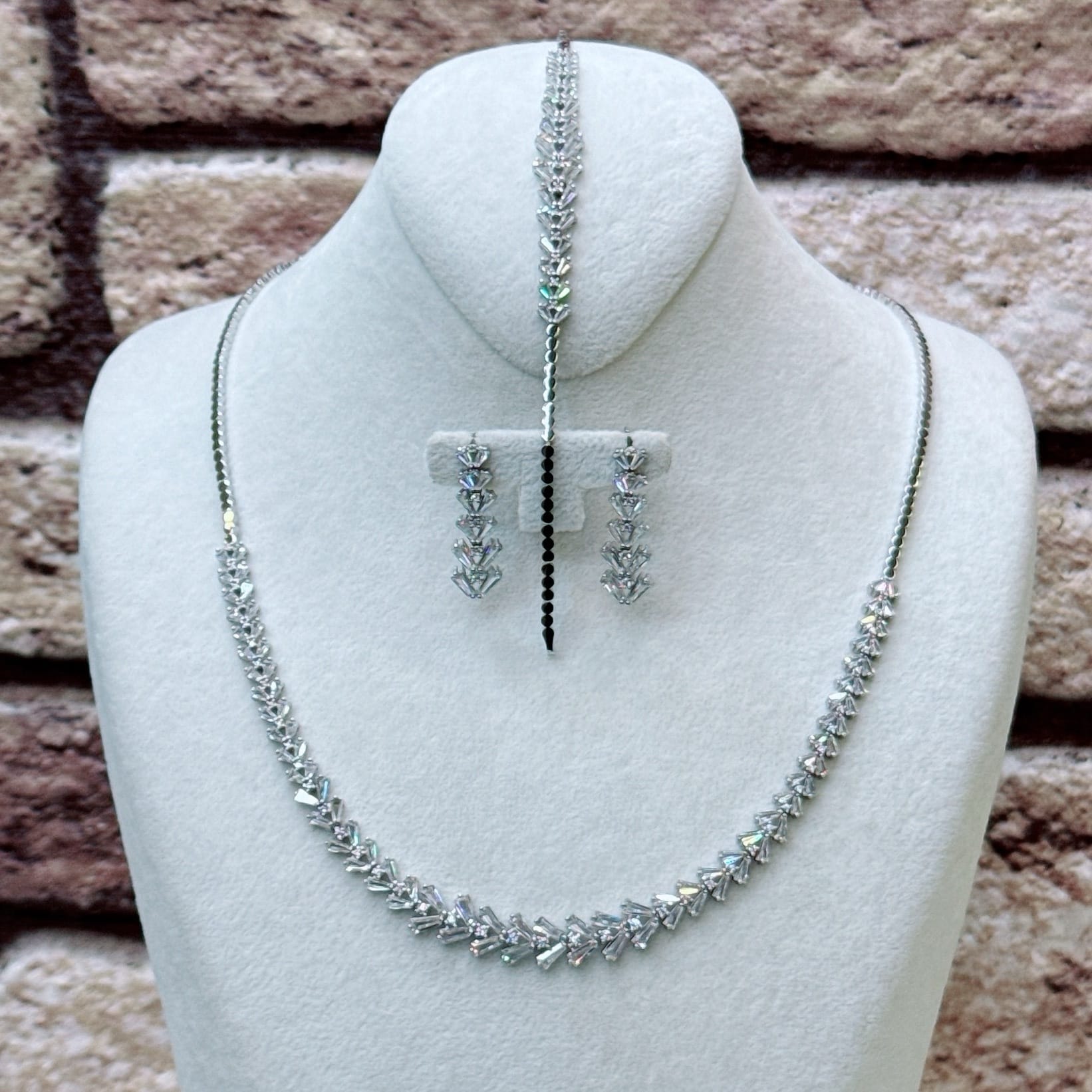*Zirkon Taşlı Model Gümüş Set Takım (Gerdanlık-Bileklik-Küpe)