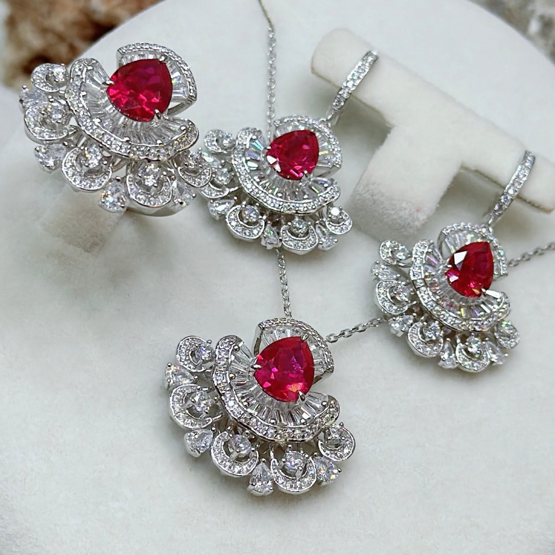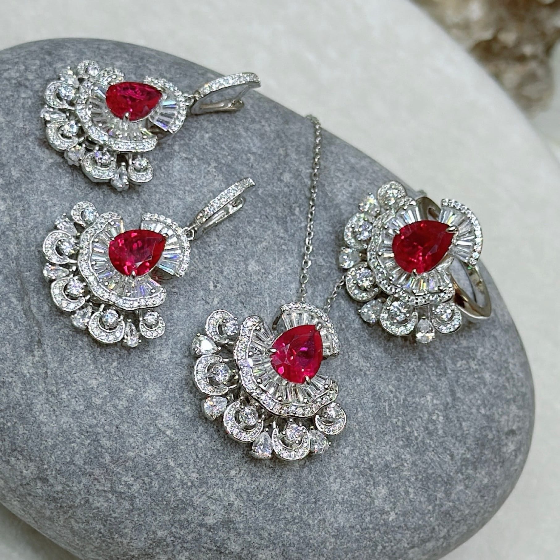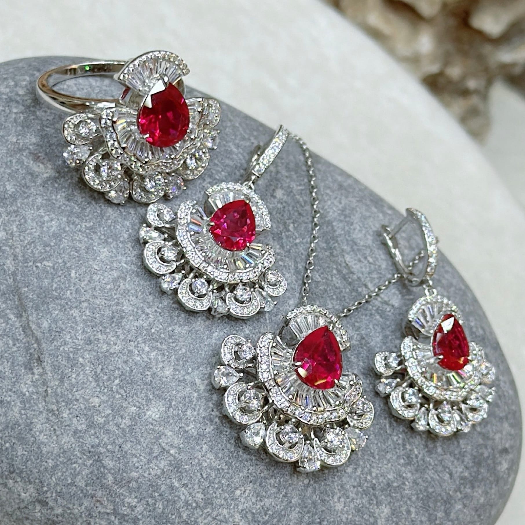 *Yakut renk zirkon taşlar sete dikkat çekici ve asil bir hava katar