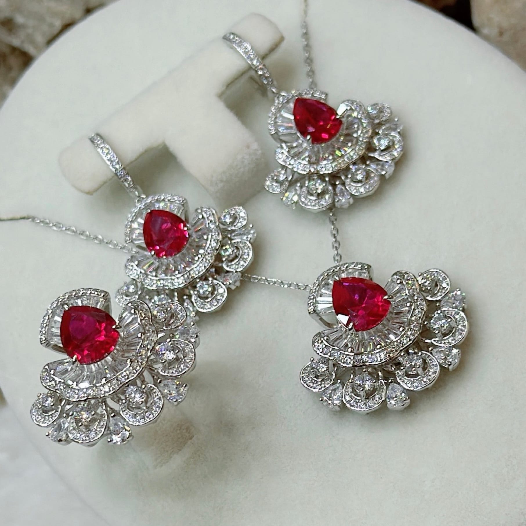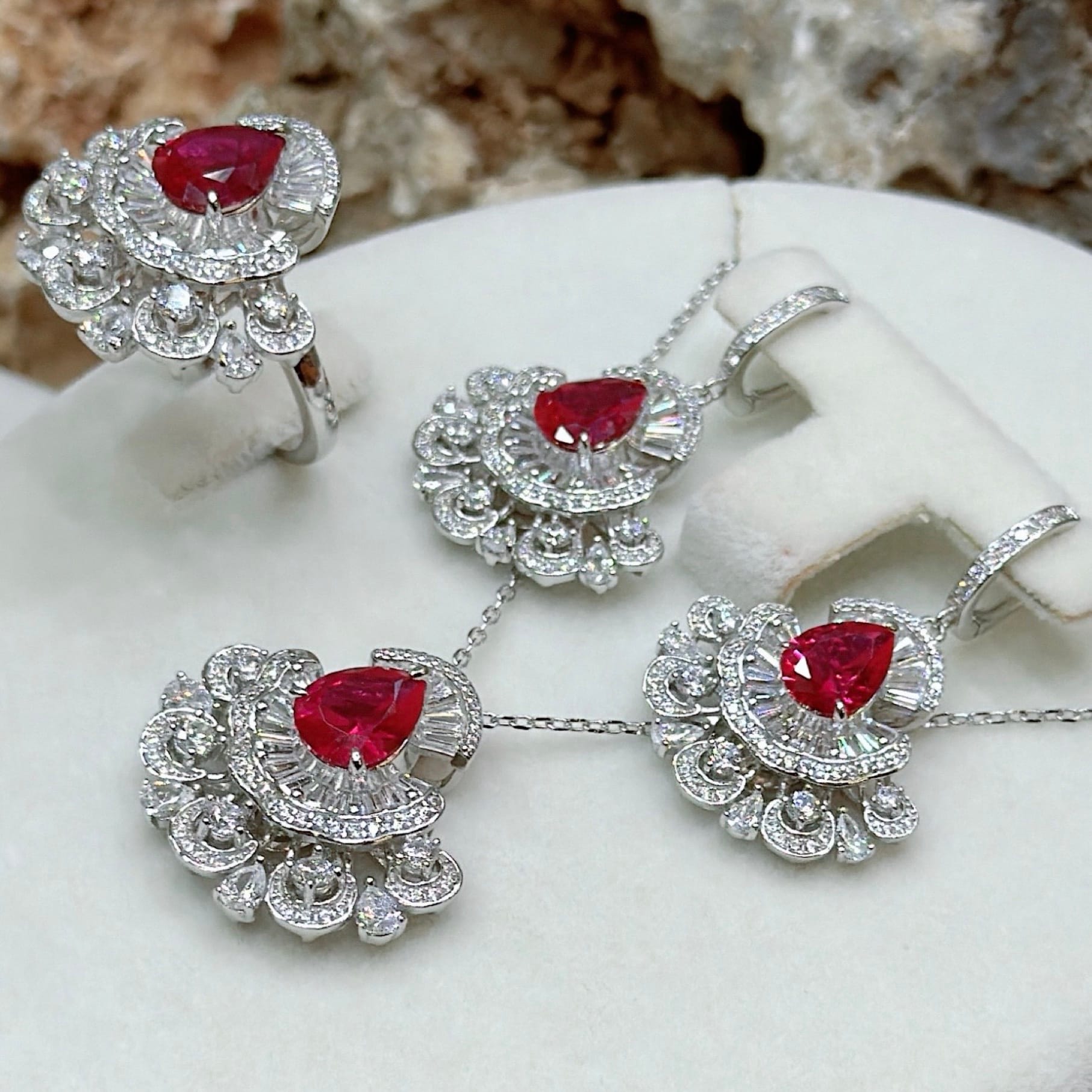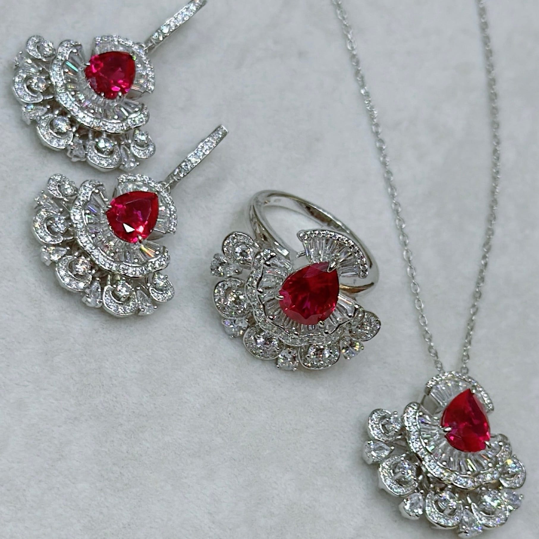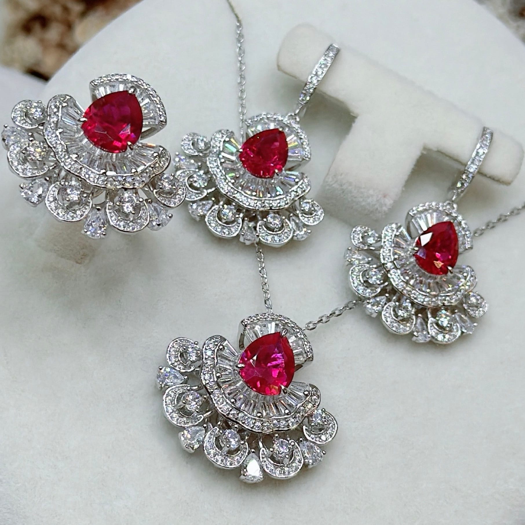 *Yakut renk zirkon taşlar sete dikkat çekici ve asil bir hava katar