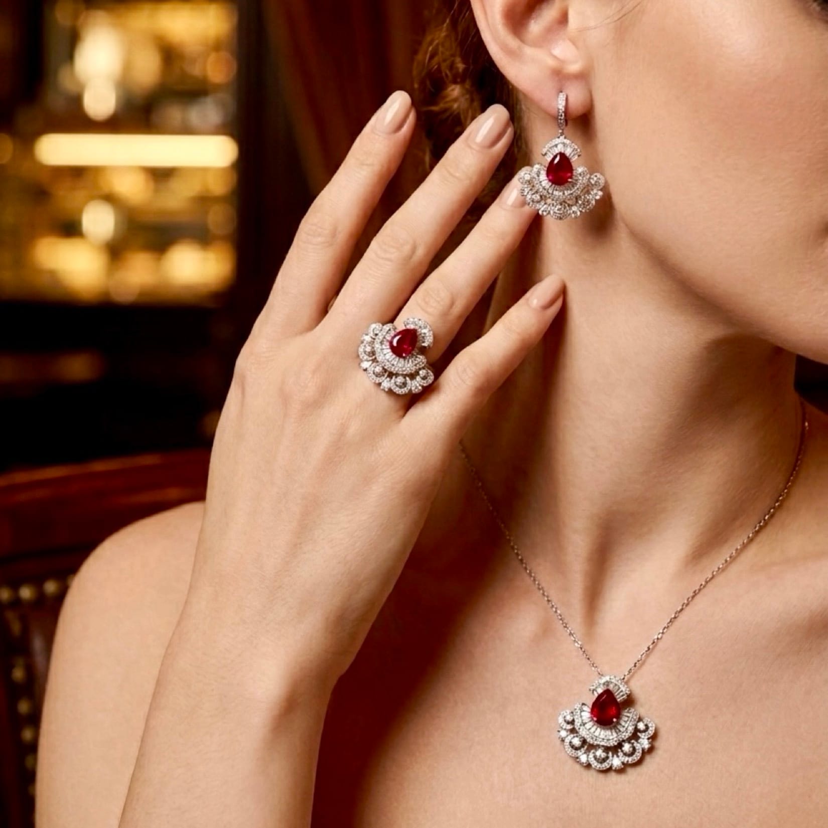 *Gümüş Üçlü Set Takım (Kolye – Küpe – Yüzük) ile kombinlerinizi uyumlu ve şık şekilde tamamlarsınız