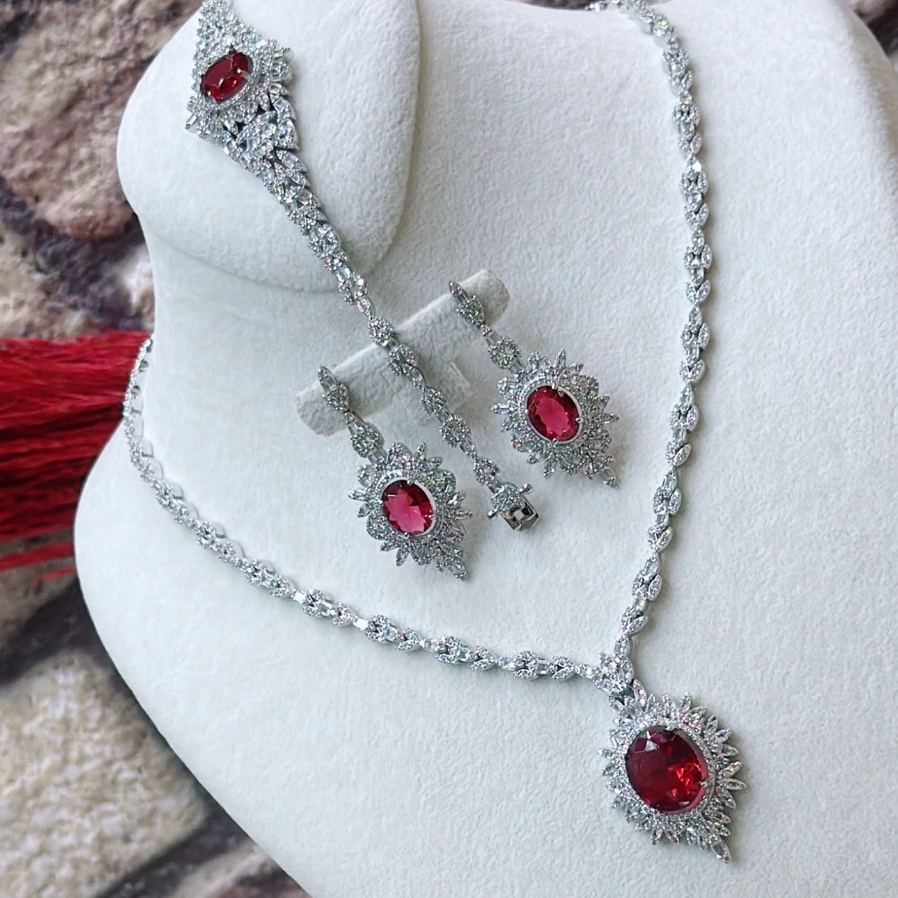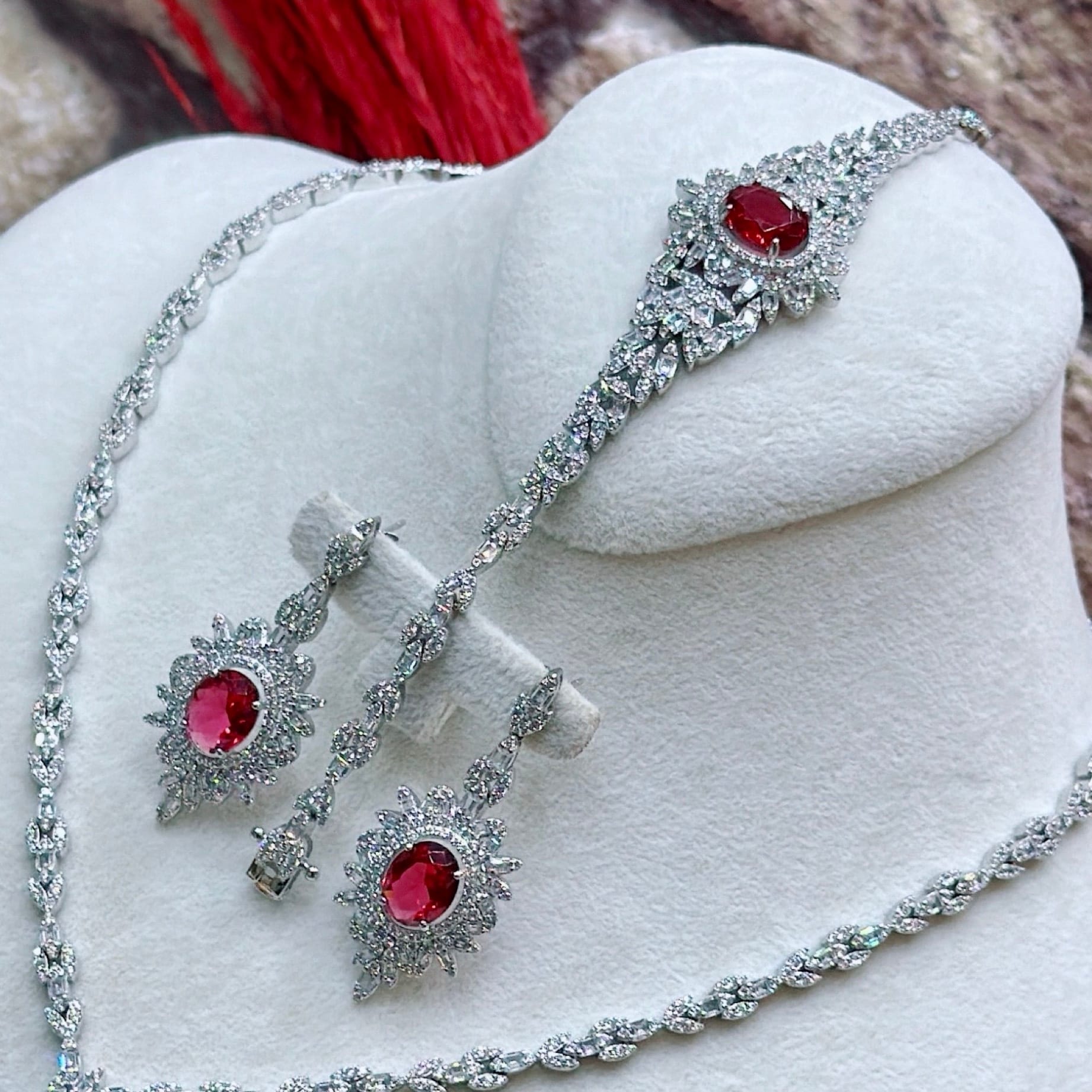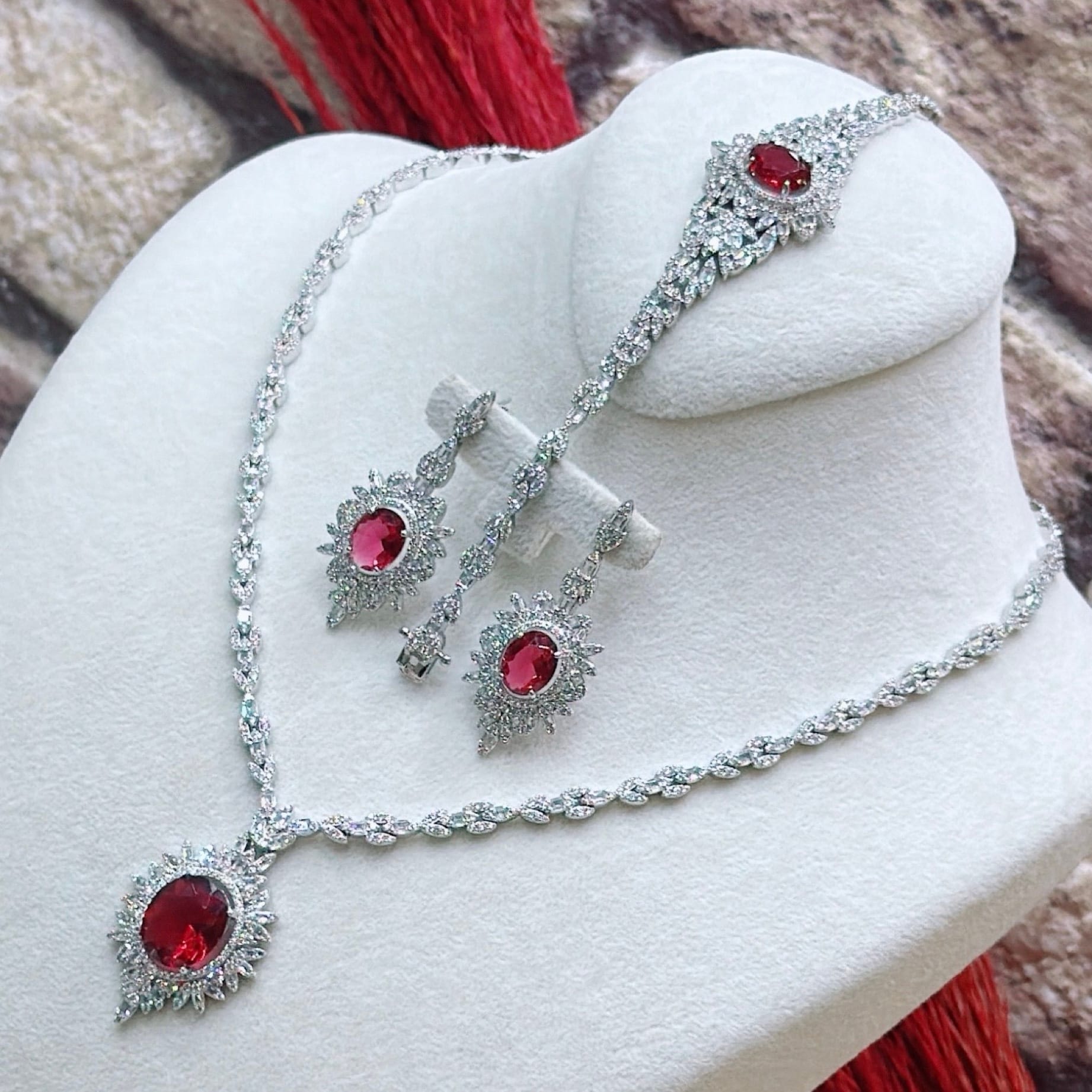 *Yakut Model Gümüş Set Takım (Gerdanlık-Bileklik-Küpe-Yüzük)