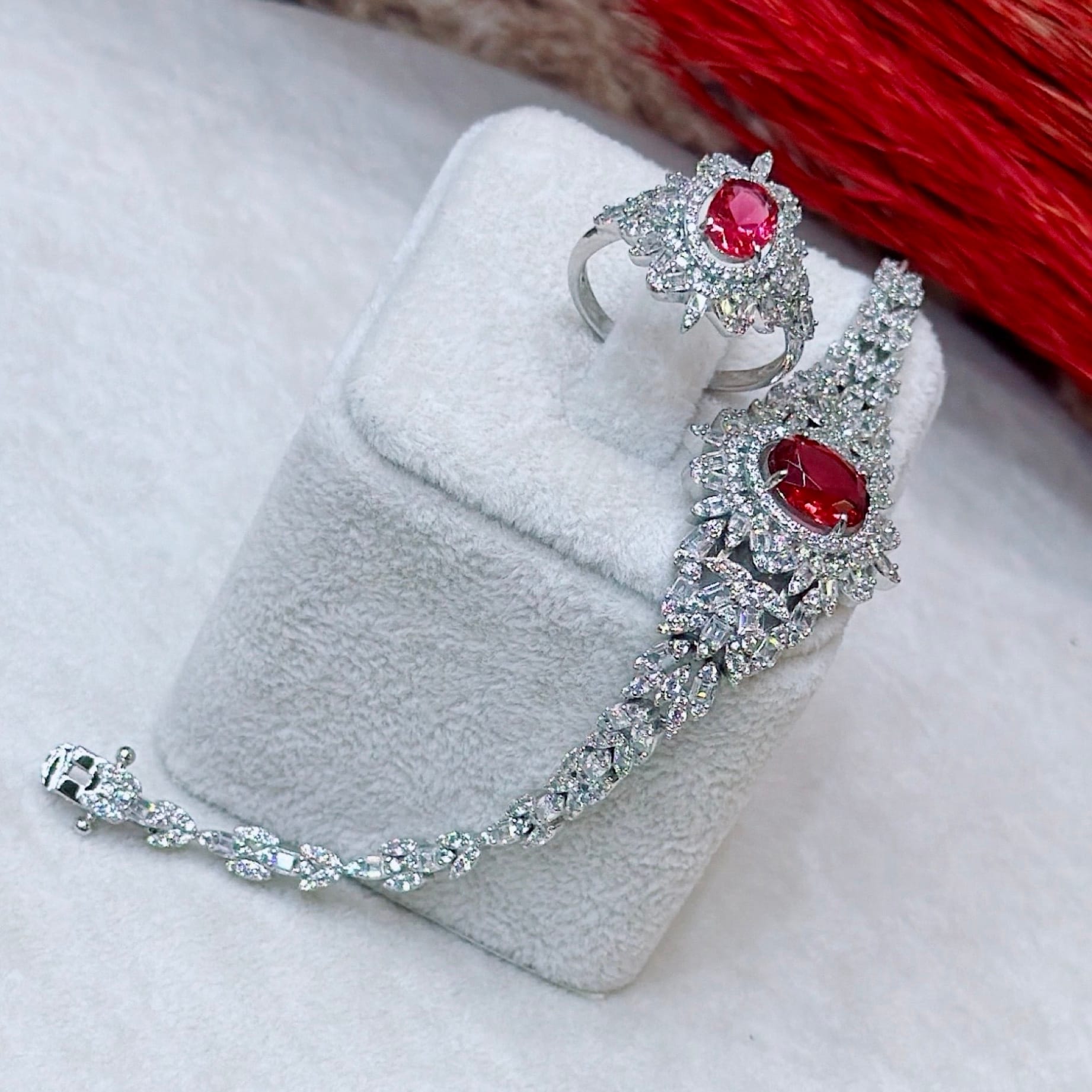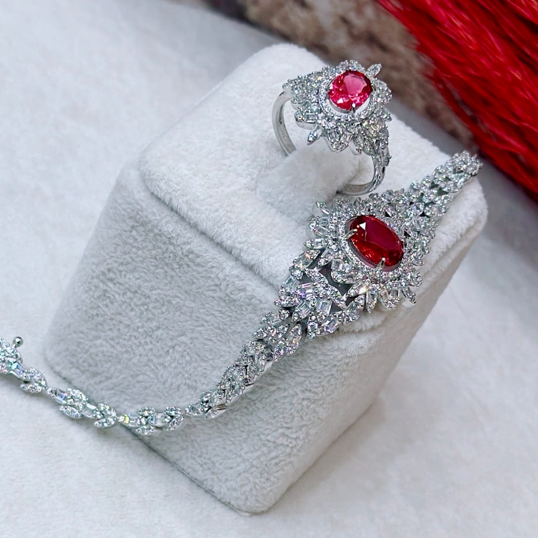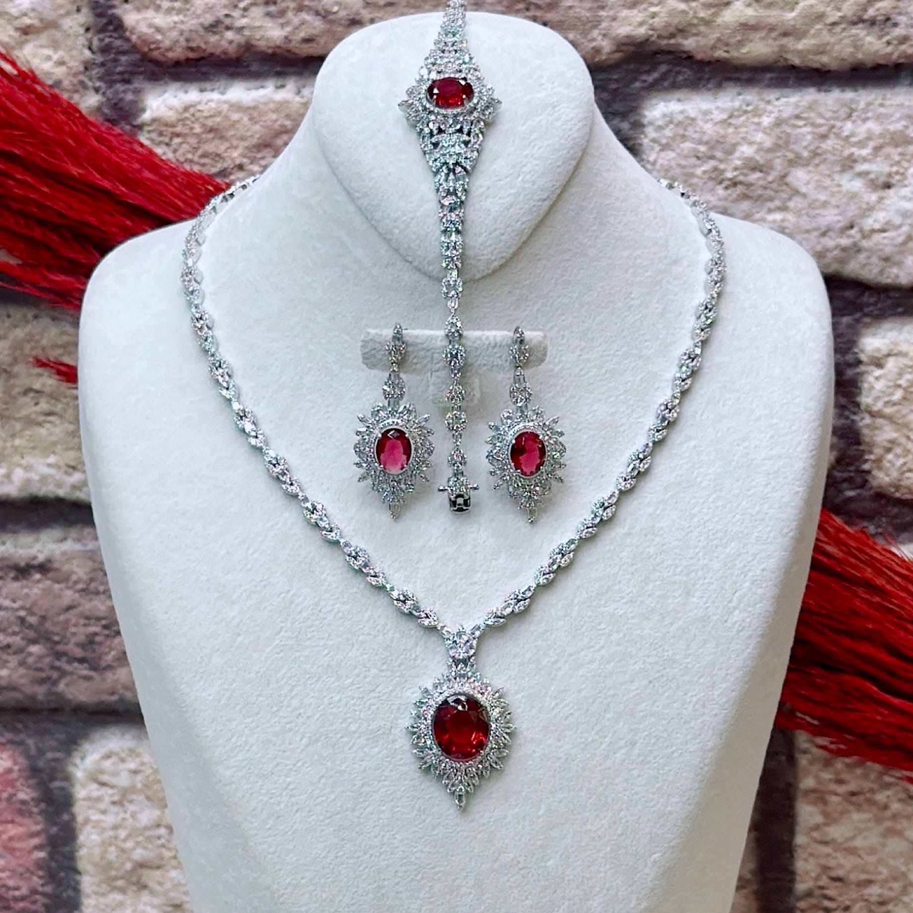 *Yakut Model Gümüş Set Takım (Gerdanlık-Bileklik-Küpe-Yüzük)