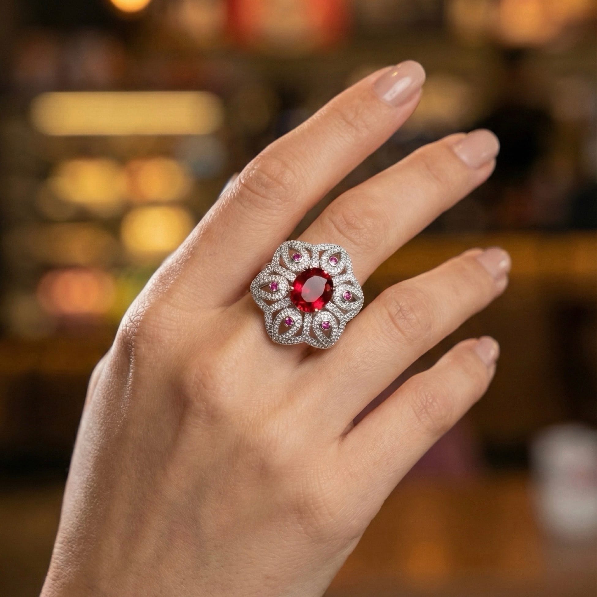 Yakut Renk Taşlı Özel Seri Gümüş Yüzük