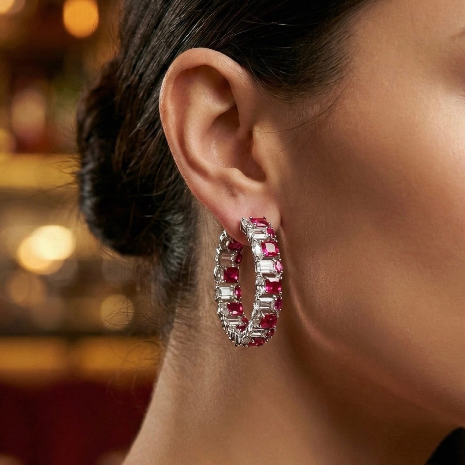 Yakut&Pırlanta Model Gümüş Halka Küpe