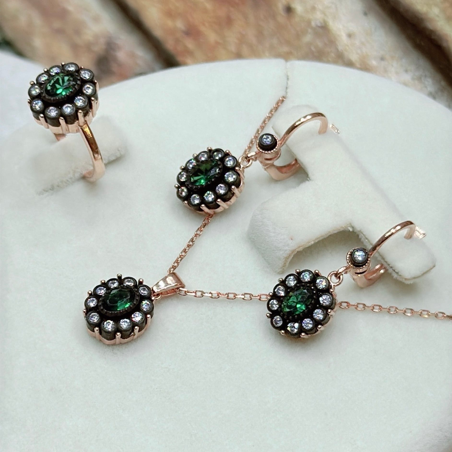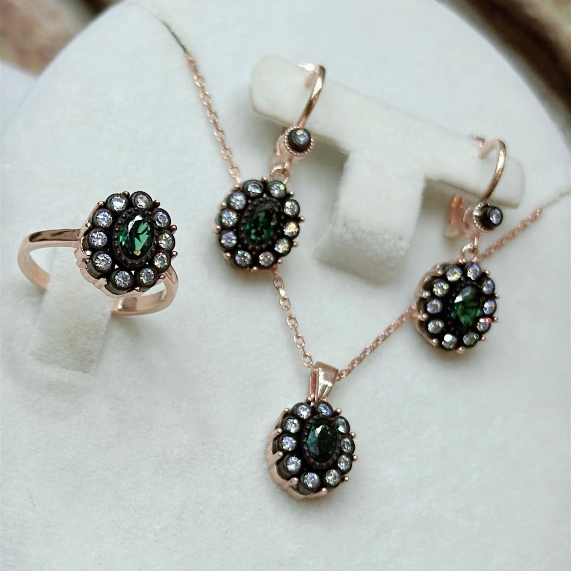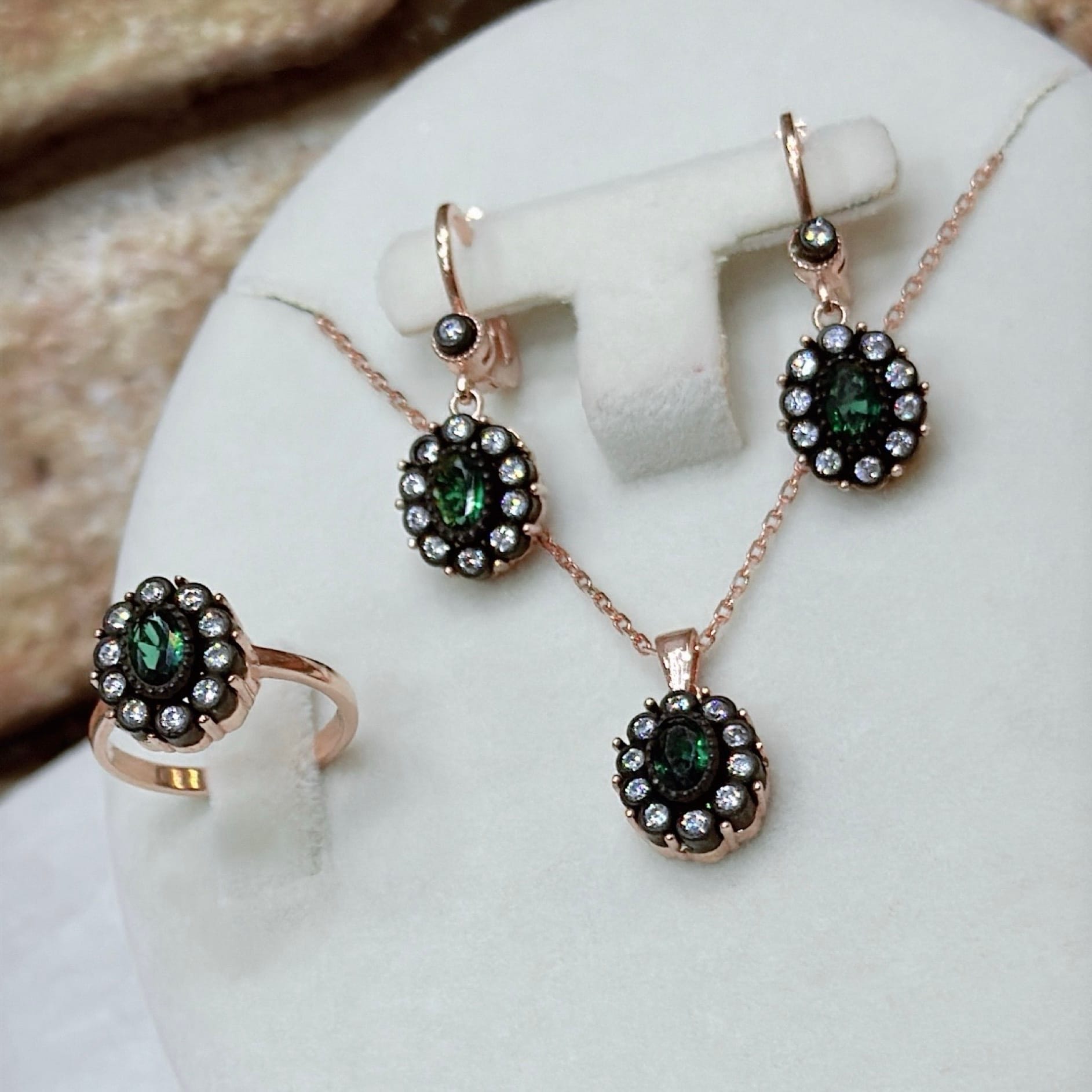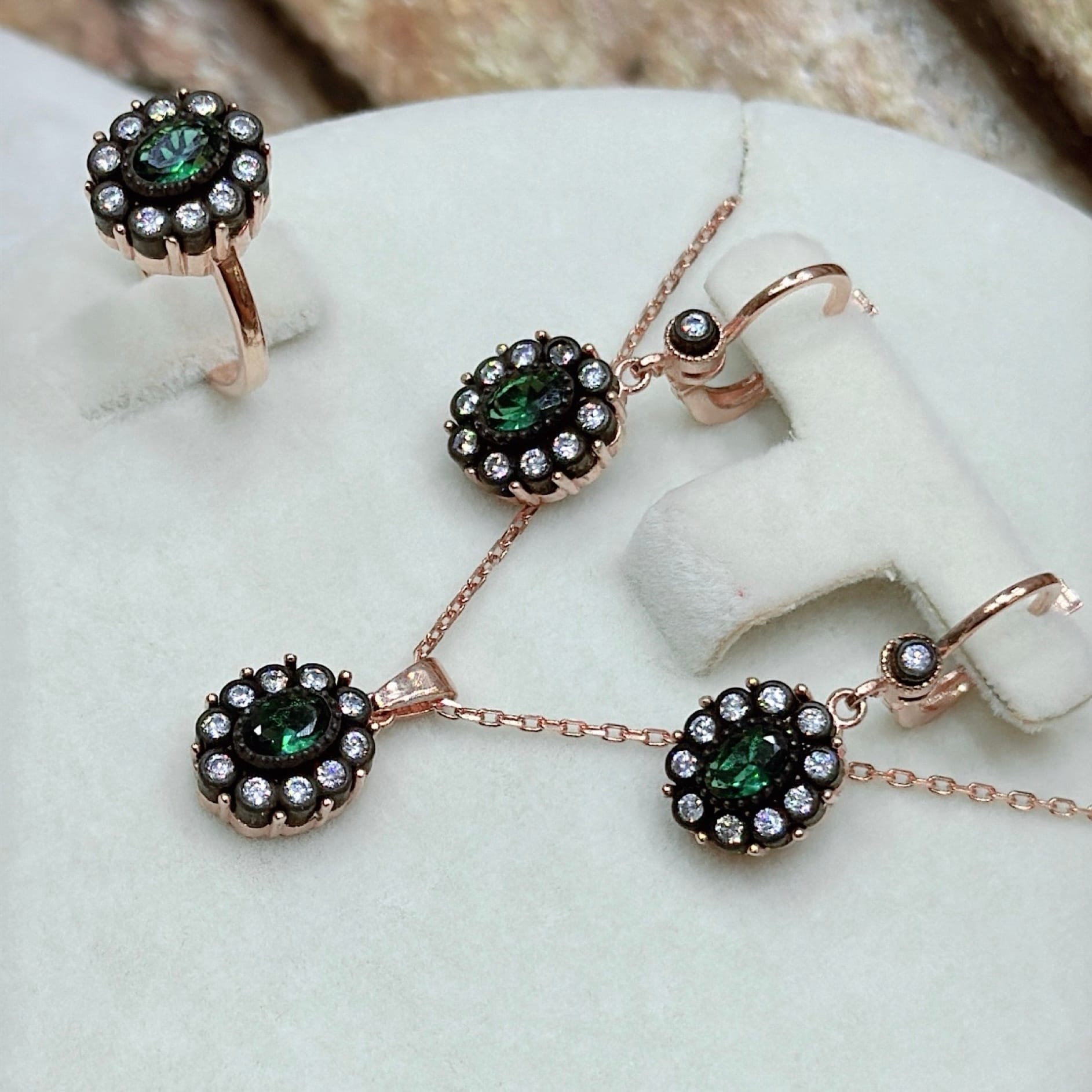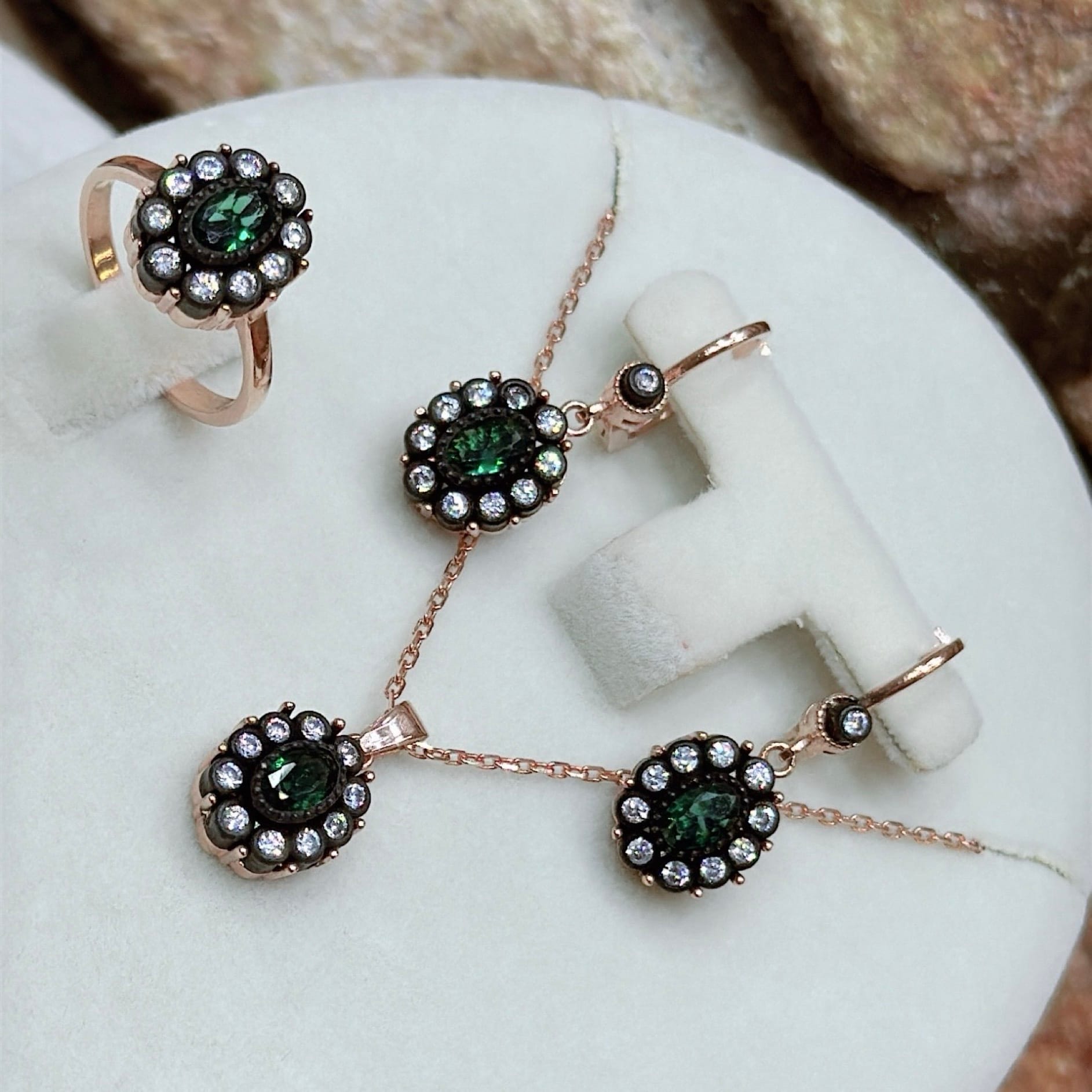 *Zirkon Taşlı Zümrüt Model Üçlü Set Takım